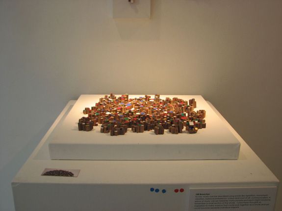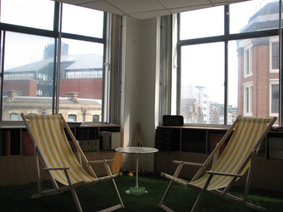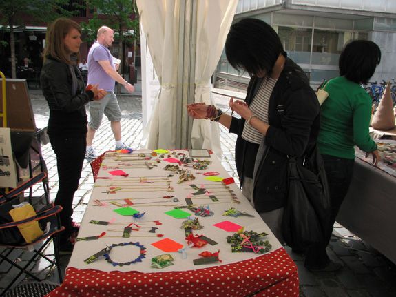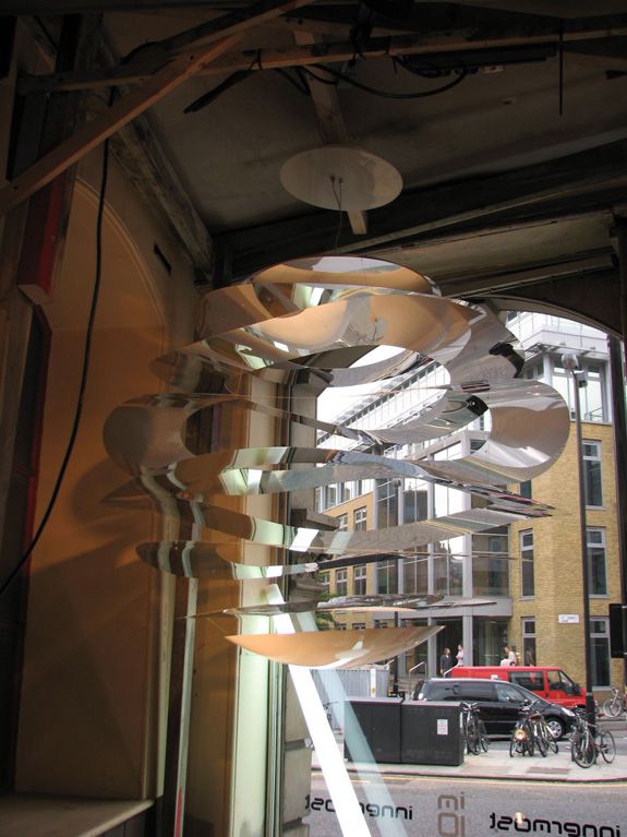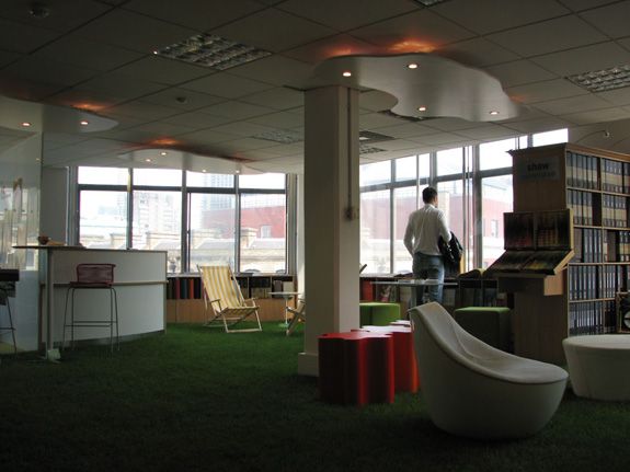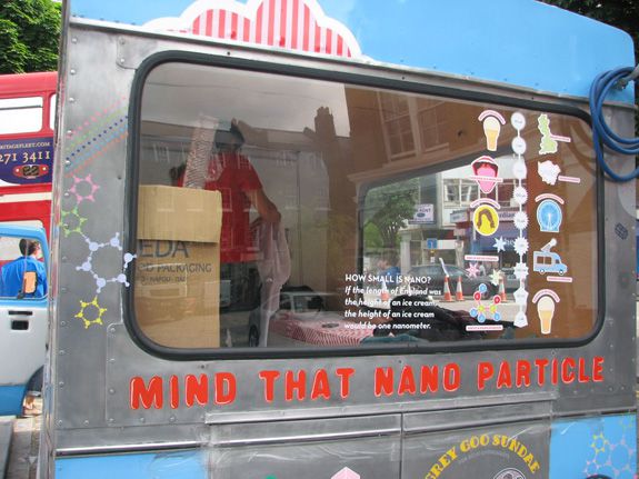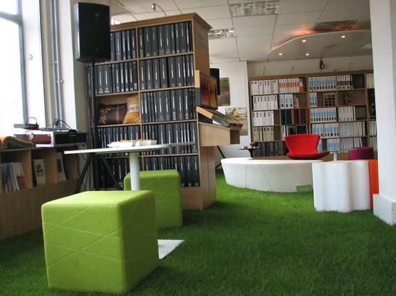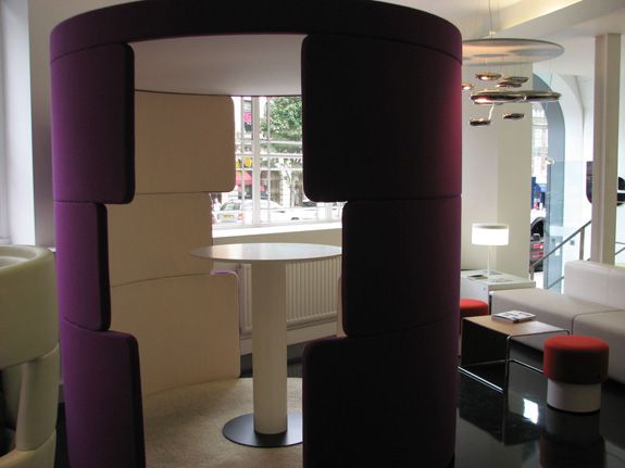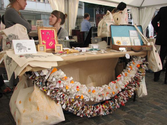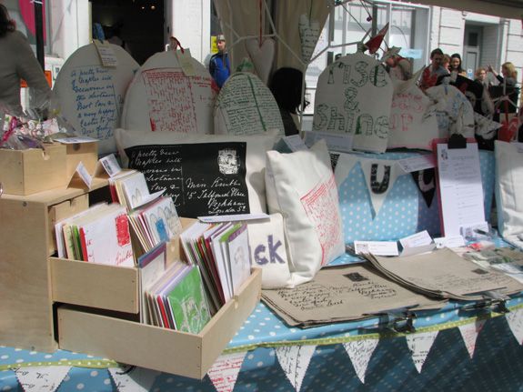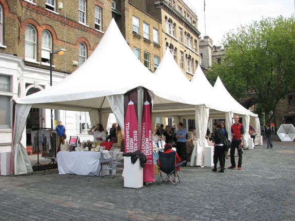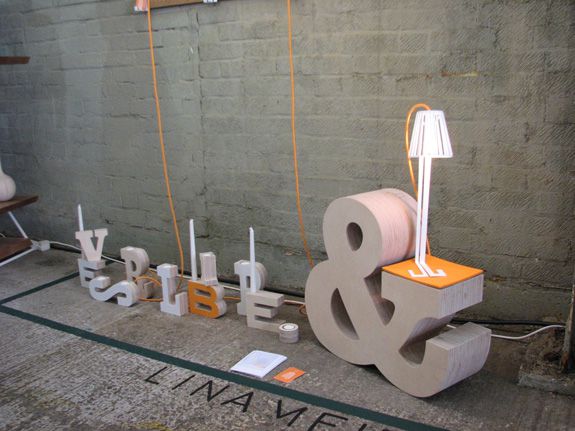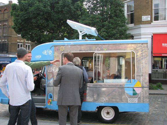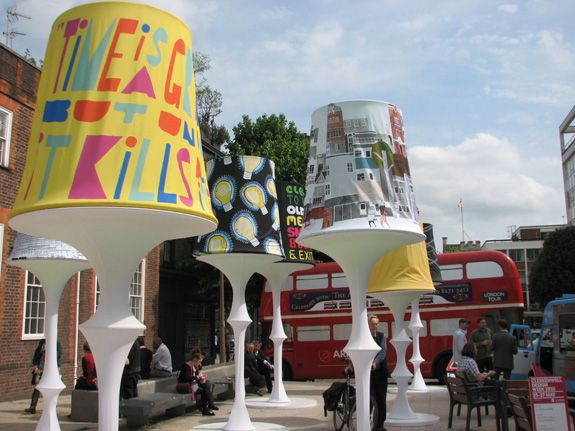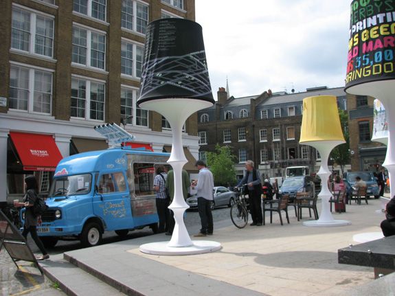 Numerosi gli eventi e i “talks” programmati, personalmente ho seguito con interesse l’intervento di Patrizia Moroso (art director della omonima e fighissima ditta di imbottiti), che intervistata dal curatore del Design Museum Gareth Williams, ha parlato dell’ultima serie di arredo da esterni M’afrique, presentata durante il Salone del Mobile di quest’anno. Uno dei progetti più curiosi che ho visto è stato “The Cloud Project”, un camioncino ambulante che vendeva del gelato di “nuvola”, in realtà si tratta di un progetto di alcuni laureati del Royal College in interaction design che hanno condotto esperimenti di nanotecnologia applicata al settore alimentare. Molto interessante anche la mostra della graphic designer estone Evelin Kasikov, che nei locali di Craft Central ha presentato i suoi lettering ricamati a punto croce in quadricromia, visti da vicino sono dei lavori di una delicatezza estrema e insieme molto forti dal punto di vista comunicativo, un idea sicuramente insolita e originale! Degno di nota anche l’allestimento della Shaw, una azienda specializzata in moquette, che ha interamente rivestito con un tappeto erboso il suo ufficio al primo piano di Clerkenwell Rd! Non rimane che aspettare il festival dell’architettura in programma tra pochi giorni!