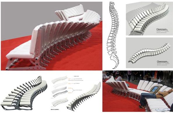L’ingegno dei designer di CleanRoom ha inoltre partorito, tra gli altri: “Spine couch”, prototipo per divano ispirato alla silhouette della colonna vertebrale umana; “Conveyor Bar”, una struttura modulare che, opportunamente montata, dà vita ad un vero e proprio bancone da portatile (la superficie del bar viene infatti montata sopra la struttura portante, che viene “compressa” in base ad un meccanismo a fisarmonica, ed è posizionata su un set di ruote)…è loro, infine, il progetto architettonico del “Museum of Sex” di New York.