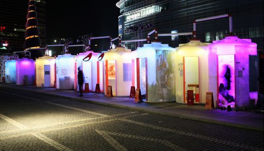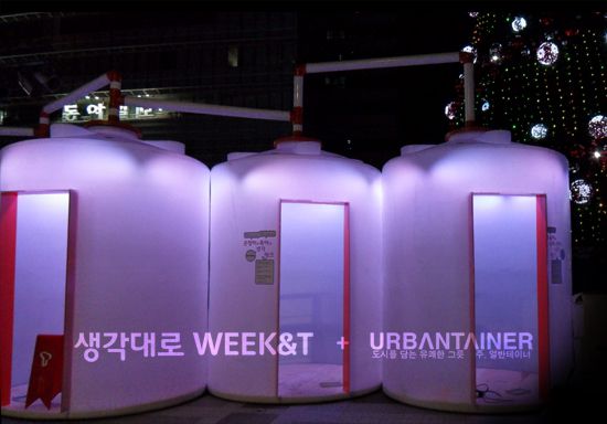 L’idea è nata dal gruppo di architetti e designer coreani di Urbantainer, che hanno pensato di riutilizzare grandi serbatoi d’acqua, comunemente collocati in giro per la città, come spazi espositivi utilizzabili dai giovani artisti.