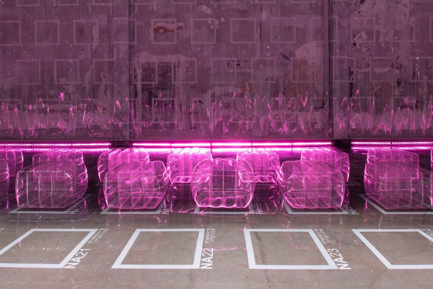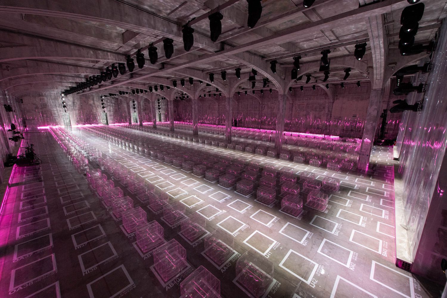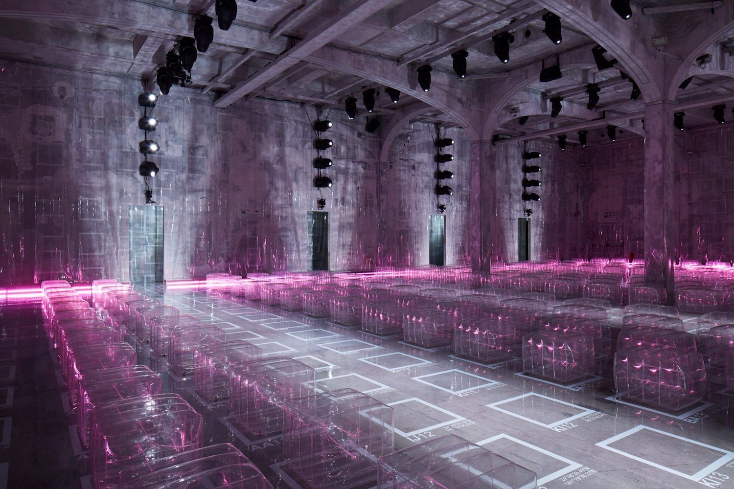 Gli sgabelli, inoltre, non erano illuminati da dietro come poteva sembrare, ma da una serie di luci rosa disseminate lungo i lati, donando al tutto un aspetto irreale e stupendo. Il design della passerella, realizzato in maniera perfetta, aveva come scopo quello di "riportare la moda in primo piano", invece di dover sempre contestualizzare la collezione in base al setting.