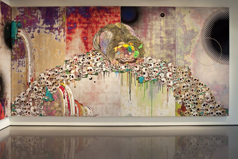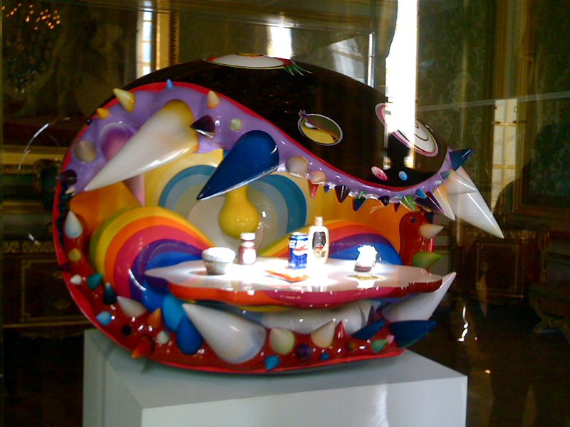 La sua arte, di voracità incontenibile, coniuga passato e presente, mescola alto e basso, divora i fantasmi della storia (il disastro atomico della seconda guerra mondiale, le bombe di Hiroshima) e li vomita sotto il naso delle nuove generazioni trasformati in gradevoli forme ludiche che ridisegnano l’inferno come un eterno paradiso adolescenziale.