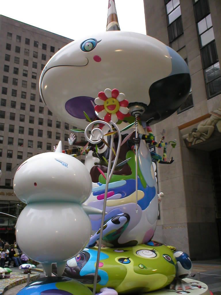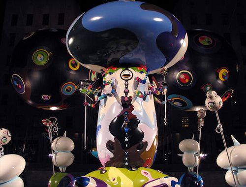 Un genio, un folletto, un malinconico sognatore ? Si sprecano glia ggettivi per descrivere lo "tsunami " nipponico Takashi Murakami, l’artista pop inventore della teoria del Superflat/Superpiatto. Come dada , rock e pop, è un termine che il guru dell’Impero del Sol Levante, un robusto giovanotto di 49 anni col codino e il pizzetto nero, ha pescato nel cilindro per descrivere la sua arte carente di profondità prospettica, fatta di piani e non di spigoli, di colori gridati e non di sfumature, di colpi di scena e non di profonde emozioni, di creatività occidentale che incrocia tradizione colta del Giappone dei samurai. Arte nobile e arte popolare appassionatamente insieme. Un omaggio alla "piattezza" che trova la sua epitome nei suoi quadri e nelle sue sculture manga (i fumetti), e nelle anime (i film d’animazione).