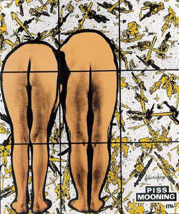 Questi due geni dall’aspetto serio e conservatore cercano di trasmettere della loro arte a tutti gli strati della popolazione. L’obiettivo del loro lavoro è un arte di forte impatto comunicativo, capace di rompere la barriera tra essa e la vita, indagando temi come la morte, la sessualità, la religione, l’aids e il denaro. Nella prima metà degli anni Settanta cominciano a lavorare con la fotografia, e l’oggetto della loro riflessione diventa il malessere della metropoli contemporanea, “Cherry Blossom picture” (1974).