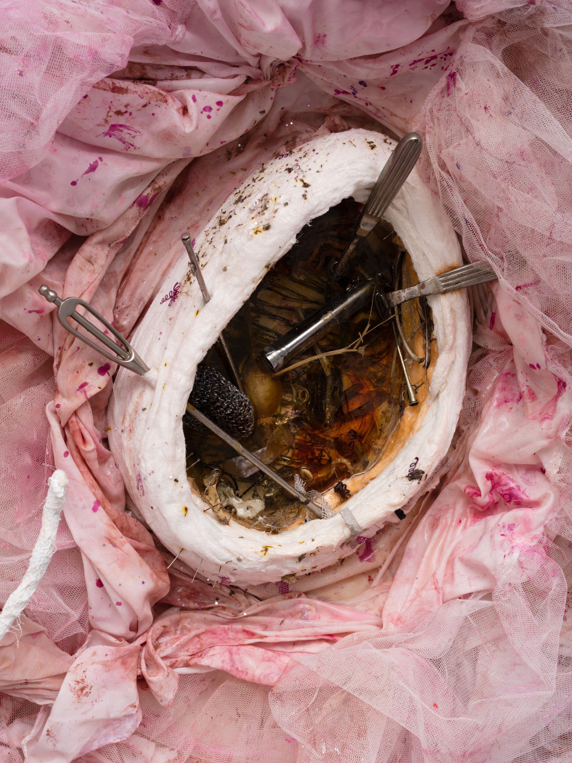 Quest’anno, in particolare, si è distinta la galleria Emalin, che ha dedicato un focus all’artista canadese Athena Papadopoulos, esibendo lavori che non potevano non affascinare ed intrigare il visitatore. Il contrasto tra i materiali - glitter, veli, organza, generalmente simboli di iperfemminilità e leggerezza - usati per discutere concetti d’altro canto violenti come la misoginia, fa sì che il pubblico sia realmente incuriosito dalle sue opere. Decisamente uno degli angoli più interessanti di questo Frieze 2018.