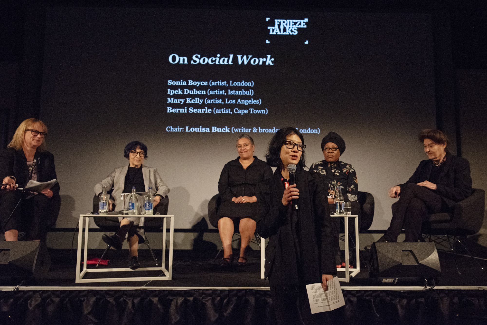 Sebbene solo due (Ipek Duben – Turchia – e Berni Searle – Sud Africa) non avessero origini inglesi o americane, tutte le artiste scelte (Mary Kelly, Faith Ringgold, Nancy Spero, Sonia Boyce, Hellen Chadwick and Tina Keane) hanno avuto ruoli sostanziali per le future generazioni, non solo in campo artistico ma anche in quello educativo ed accademico. Ma soprattutto, Social Works è servito a dare attenzione e a continuare la discussione riguardante la discriminazione di genere all’interno di un ambiente prettamente focalizzato sull’aspetto economico e finanziario dell’arte.