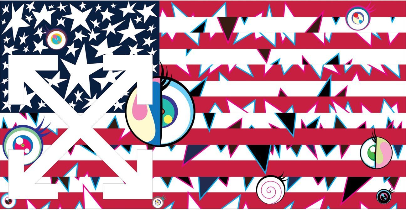 Dopo il recente successo ottenuto in febbraio a Londra con la loro mostra Future History e a Parigi in giugno con Technicolor 2, Takashi Murakami e Virgil Abloh hanno deciso di riunire le forze per la terza volta per dar vita ad America Too. Il nuovo progetto artistico, che sarà esposto a partire dal 10 ottobre fino al 25 ottobre 2018 presso la Gagosian di Beverly Hills, in California, includerà una selezione di dipinti, sculture e opere dalle tinte neon come già viste in precedenza, ma anche tanti pezzi originali. Tra questi spicca una rivisitazione particolare della bandiera americana, svelata da Murakami su Instagram. Il classico emblema a stelle e strisce viene rielaborato in chiave cartoon con un divertente mash-up degli stili di Abloh e dell’artista giapponese: dalle frecce intersecanti di Off-White agli occhi stile manga di Murakami. Curiosi di vedere le altre creazioni? I precedenti show della coppia, hanno generato molto hype, richiamando visitatori ed estimatori importanti come Justin Timberlake, Mos Def, KAWS e il modello Luka Sabbat. Ci aspettiamo lo stesso riscontro per Beverly Hills.