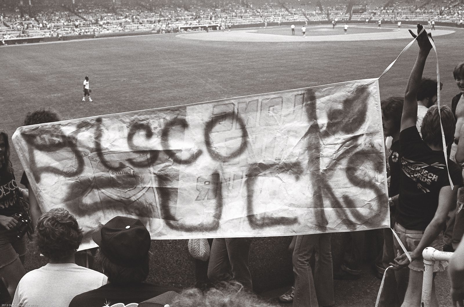 Negli anni Settanta, con l’ascesa della disco music la cultura dei club ebbe nuovo impulso. Il dancefloor offriva un palcoscenico per performance individuali e collettive, creatori di moda come Stephen Burrows o Halston fornivano gli abiti giusti per uno stile sfavillante. Lo Studio 54, aperto a New York da Ian Schrager e Steve Rubell nel 1977 e con gli arredi firmati dall’architetto Scott Romley e dal designer d’interni Ron Doud, divenne un luogo d’incontro molto amato dagli idoli del culto delle celebrità, allora ai primordi. Soltanto due anni dopo, il film Saturday Night Fever segnò il culmine della commercializzazione del movimento disco. È bene ricordare però che l’anima della disco music non è mainstream: nata in club e bar frequentati dalla comunità LGBTQ+ e nera ma anche latinoamericana, marginalizzate dalla maggioranza bianca e eterosessuale, si sviluppò in modo assolutamente politicizzato e con una forte connotazione sociale come un fenomeno underground, poi traghettato attraverso locali come il Paradise Garage – gay club che per primo rompe le regole della discriminazione razziale − verso la cultura di massa. Non a caso, i contro-movimenti come quello culminato con la Disco Demolition Night di Chicago (1979) diedero voce a tendenze reazionarie, in parte caratterizzate da omofobia e razzismo. Contemporaneamente, discoteche come il Mudd Club (1978) o l’Area (1978) di New York, fondendo vita notturna e arte, offrivano nuove opportunità ai giovani artisti emergenti: fu in questo scenario che ebbero inizio le carriere di Keith Haring e Jean-Michel Basquiat.