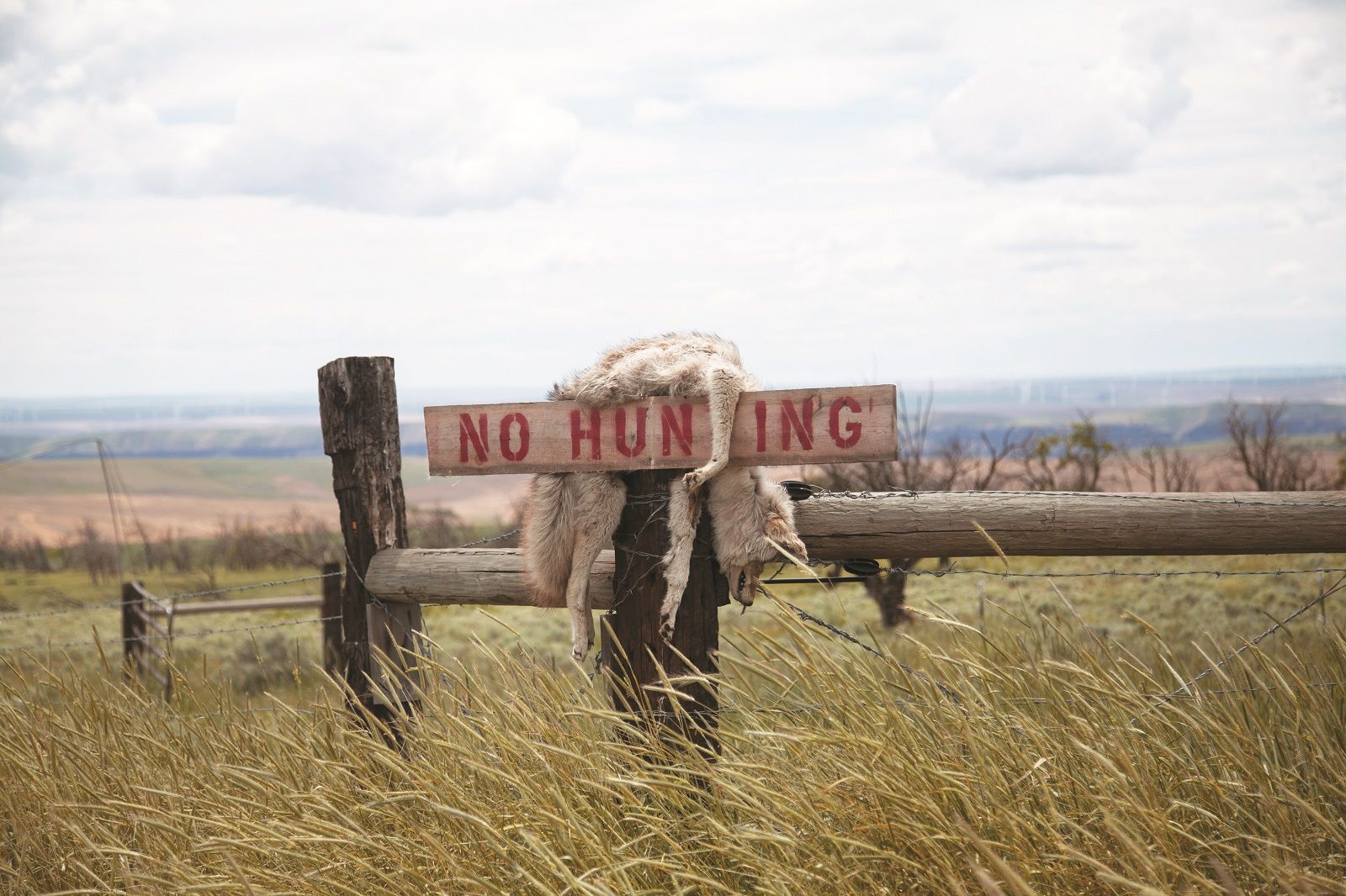 Lo scatto Coyote, in cui l’eponimo animale penzola ucciso da un cartello che vieta la caccia suggerisce un’ironia nera e parla della brutalità di luoghi dove la civiltà urbana non è mai arrivata.