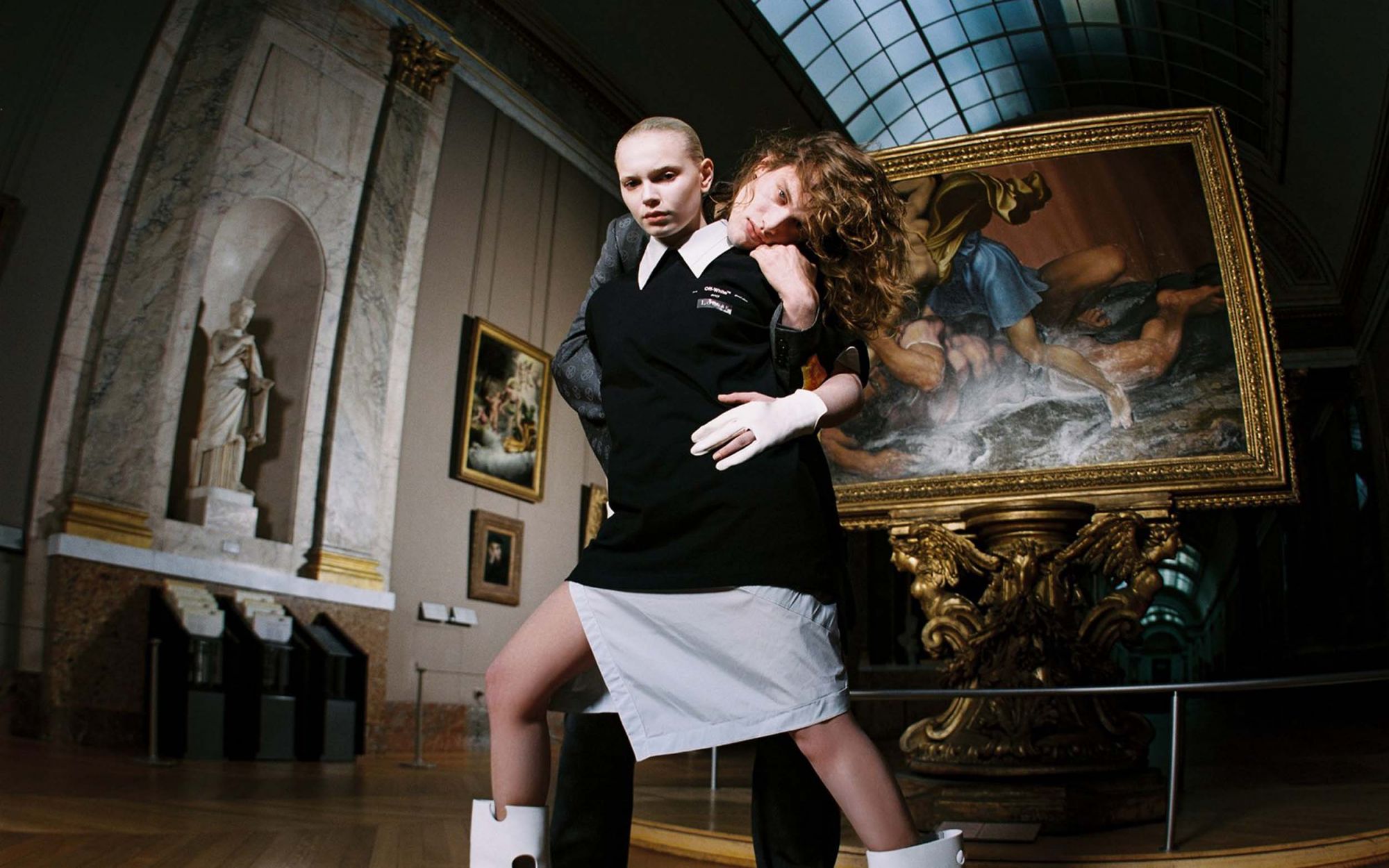 Le foto ufficiali della release di Off-White e Louvre sono state scattate nella Grand Galerie del Louvre, la sala più famosa dell’intero Museo - fatta eccezione per quella che contiene la Monna Lisa - e che rappresenta una sorte di Sacro Graal per l’arte classica museale. La stessa sala in cui, nel giugno del 2018, Beyoncé e Jay Z girarono una buona parte di “APESHIT”, il video del primo singolo estratto dal loro album collaborativo. Il video non aveva solamente avuto un grande impatto mediatico - tale che lo stesso Louvre decise di realizzare un percorso tematico per la visita delle opere coinvolte nel video - ma anche pubblicitario (il direttore del Louvre annunciò che “APESHIT” aveva attivamente contribuito al grande 2018 del museo). Il più grande risultato del video fu la nascita di una conversazione positiva attorno alla riappropriazione degli spazi museali da parte degli afroamericani. Luoghi da sempre eurocentrici, dai quali gli afroamericani sono stati storicamente esclusi, se non fosse per le eccezioni brillanti di artisti come Basquiat o Kehinde Wiley - l’artista che Obama ha scelto per il tradizionale ritratto presidenziale conversato alla a National Portrait Gallery. Ma pure in questi casi, l’arte nera è spesso stata goduta dal pubblico bianco, magari estraneo ai significati più profondi dell’opera, o alla sua rilevanza socio-politica. Il paradosso è ben rappresentato da una delle prime scene di Black Panther, in cui la guida del museo londinese che accoglie Killmonger non è a conoscenza del valore (il vibranio) dell’opera a cui il personaggio interpretato da Micheal B Jordan si mostra interessato.