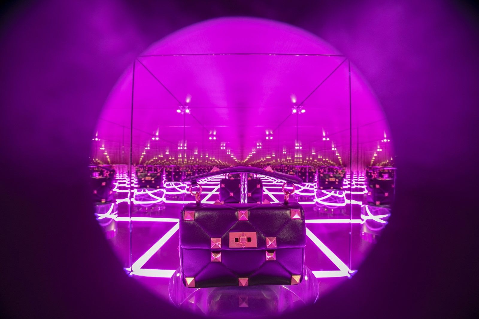 Con il termine di brand experience si vuole definire un tipo di percorso multimediale fisico in cui le diverse personalità creative che gravitano nell’orbita della maison dialogano in un sistema aperto ed espansivo, nel quale il passato e il presente del brand interagiscono con la storia recente e contemporanea della ricerca artistica e visuale, dalla video arte al cinema underground, e dalla fotografia alla computer grafica. Il percorso, curato da Mariuccia Casadio e Jacopo Bedussi con un allestimento di Kennedy London, rappresenta una messa in atto del concetto stesso di re-significazione e include architetture illusorie, capi della maison dal passato remoto o recente, dalle ultime collezioni Valentino Garavani Rockstud e Atelier fino ai capolavori della Couture, insieme a opere degli artisti Jacopo Benassi, Cao Fei, Jonas Mekas, Stanley Mouse, Robby Müller, Quayola, Anna Ridler, Rachel Rose, Sølve Sundsbø, Natália Trejbalová e Weirdcore.
