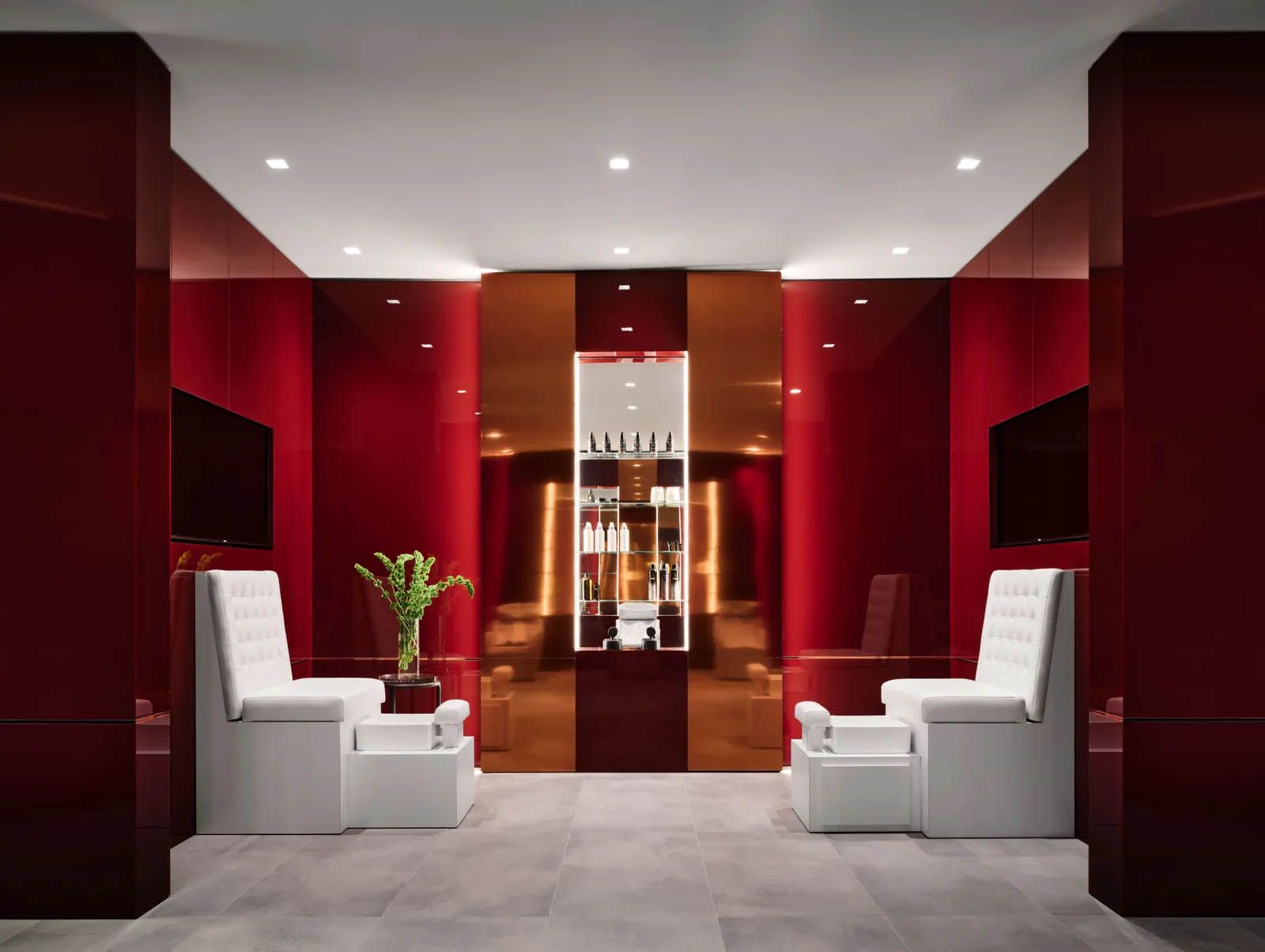 Nella casa ci sono 42 bagni, 21 camere da letto, una master suite, un garage con 30 posti auto e due car-display, una pista da bowling a quattro corsie, una spa, un cinema da 30 posti, un'ala filantropica per gala di beneficenza, uno sky deck e cinque piscine. Per gli interni Kathryn Rotondi si è affidata a brand provenienti da alcuni degli alberghi più lussiosi al mondo come Aman, Bulgari e Baccarat. Mentre la color palette della casa è un omaggio alla boutique di Tom Ford su Rodeo Drive, una delle preferite di Niami e McClean. Inoltre nella casa è presente un'impressionante collezione d'arte, da Stephen Wilson a Niclas Castello, fino a una collezione di mobili su misura di byShowroom.