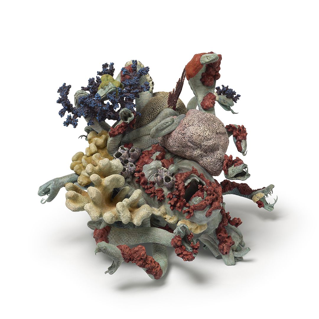 La collezione in mostra di Hirst era stata originariamente esposta a Venezia, nel 2017 a Palazzo Grassi e a Punta della Dogana, e il concept alla base era quello di immaginare le rovine di una immaginaria civiltà sommersa riportate alla luce dopo decenni, unendo dunque scultura ed elementi naturali come coralli e conchiglie e riflettendo sul concetto di rovina e di decadimento. La serie di nome Colour Space è invece uno sviluppo dei celebri quadri a pois di Hirst e rappresentano una sorta di “rottura dell’ordine” con l’apparente caos e movimento dei punti ammassati sulla tela che si scontra contro la fissità dell’immagine complessiva.