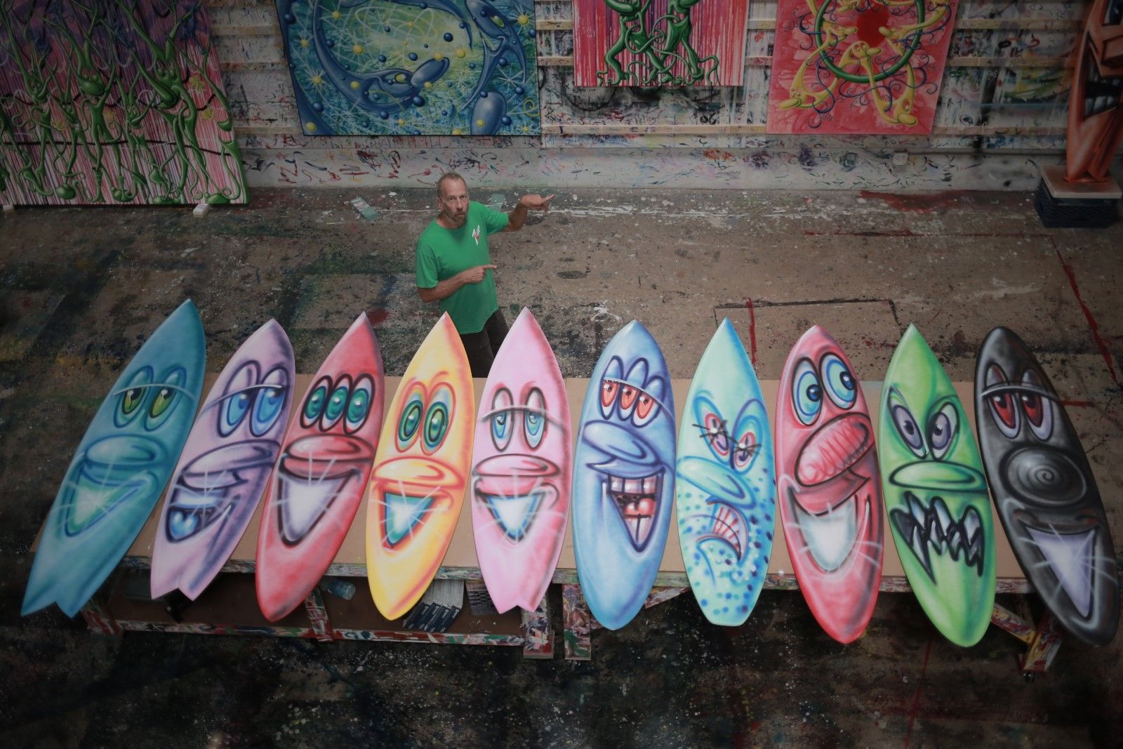 Kenny Scharf firma 12 tavole da surf per Parley for the Oceans L’arte anni ’90 per salvare gli ecosistemi marini di Tulum