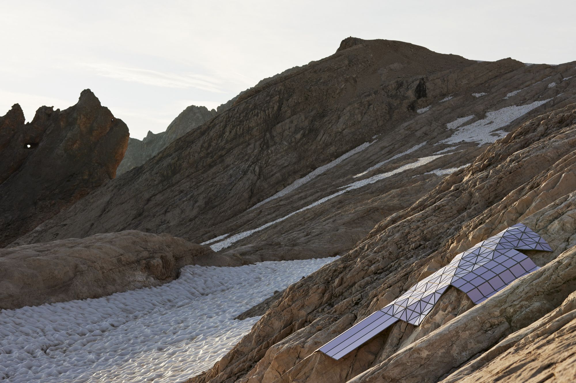 Nel progetto From sunrise to sunset i pannelli rivestono le superfici rocciose delle Dolomiti creando un’installazione dall’atmosfera futuristica e sospesa. Un’équipe composta dal fotografo Omar Sartor, l’Art director Michela Alquati e il video maker Matteo Borghi, si è recata sulle Dolomiti presso il Ghiacciaio della Marmolada per immortalare i Mesh mentre ricalcano un luogo aspro e ricco di formazioni rocciose irregolari grazie alla loro multi-adattabilità.
