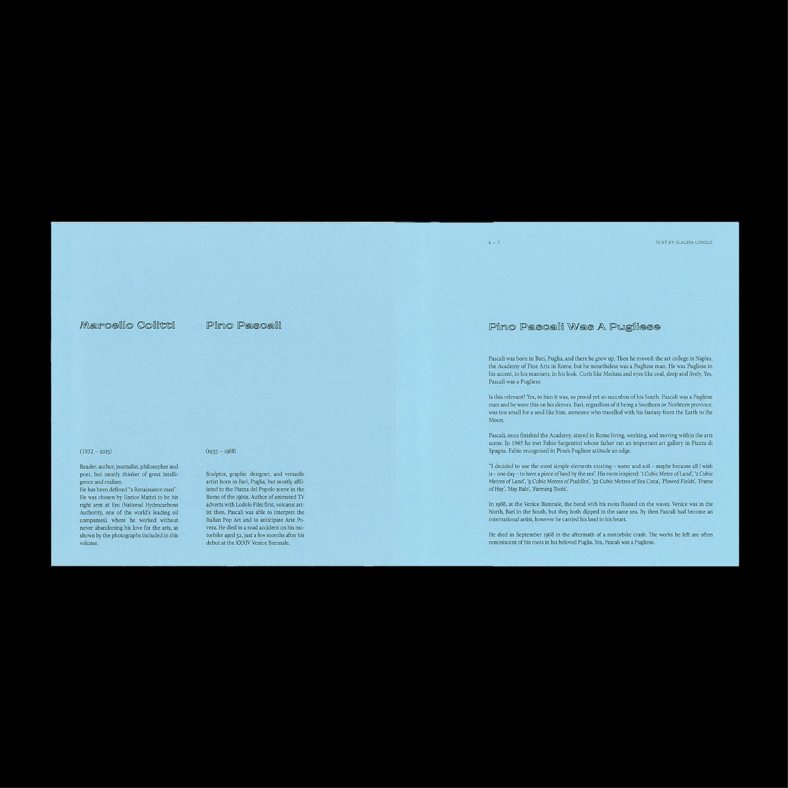 Entrambe le pubblicazioni sono interessanti in quanto dimostrano la molteplicità di punti di vista che, tramite la ricerca d’archivio, possono essere usati per riesplorare patrimoni dimenticati dell’arte italiana con linguaggi nuovi. Il focus delle due fanzine sono i lati meno esplorati dei due artisti: se quella dedicata a Pino Pascali segue la strada della biografia, con la cronaca intima della sua vita e del suo processo creativo a pochi mesi dal suo storico debutto alla Biennale di Venezia del ’68; quella dedicata a Fellini sceglie di ripensare l’opera del regista, rimontando e assemblando i frame più celebri dei suoi film tramite la photocopy art, Xerox e il collage ma soprattutto rileggendo il lavoro di Fellini come un’anticipazione della cultura psichedelica degli anni successivi.