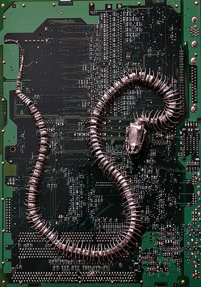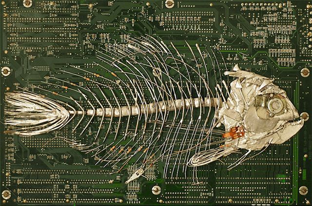 Circuit board fossils, paintings and other found object The Recycled art of Peter McFarlane