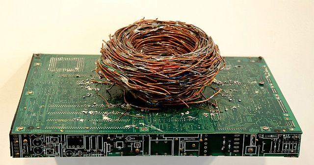 A life looking for recycled materials, waste computers, televisions and technology objects past, Peter McFarlane is an artist who uses more technical work to produce its objects. Installations, paintings, sculptures, everything he has in mind and in his hands, Peter reworks it, he reassembles, manipulate it, is defined as a lover of waste, because those sees what others do not have imagined discarding them, in fact all materials he uses are closely related to his ideas, the stories of those same objects. Peter McFarlane you can see more from the site of Saatchy Portfolio and its well maintained.
