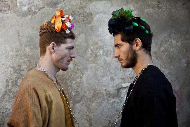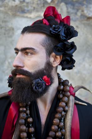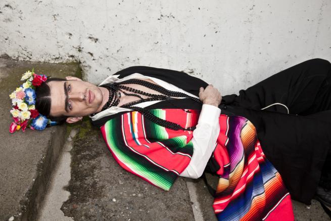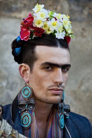 In his shooting Luis Carlos Aguayo enhances the ambiguity, the rough beauty, the thick eyebrows and olive skin, all these elements take us back in time makes us relive the spectacular painful and difficult art of Frida Kahlo. The subjects of the shots have wreaths on their heads and big colorful earrings adorning his face gaunt and covered with a black beard, making it almost half woman and half man. Recently, the pictures were projected during last Tom Rebl fashion show.
