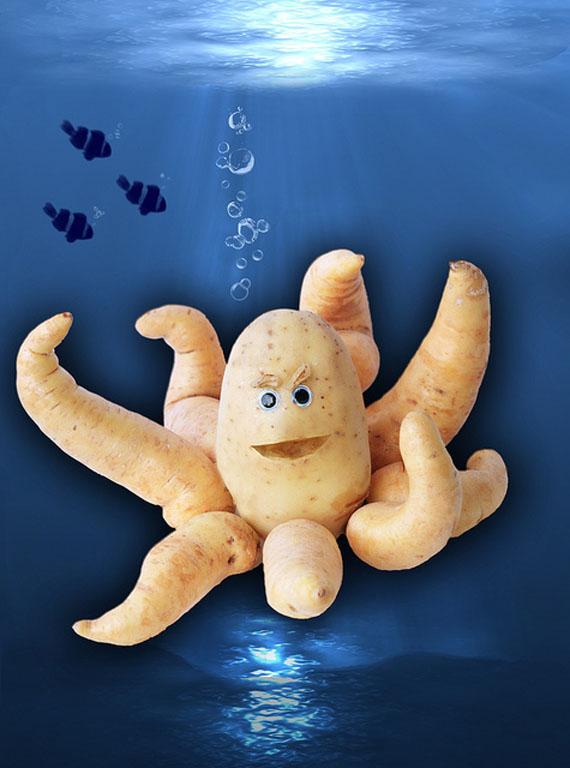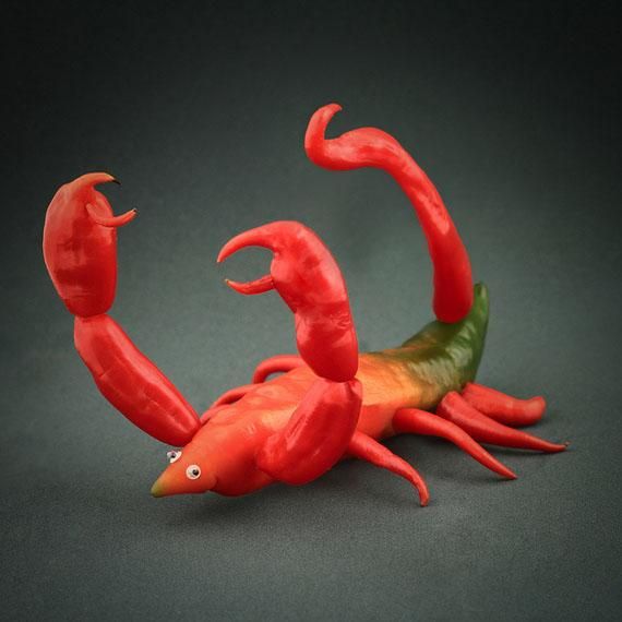 Vanessa Dualib è una fotografa e amante del cibo a tal punto da creare, sculture e figure animali, con frutta e verdure. Da una patata, un Octopus, da una melanzana un'orca, da un peperone un astice.