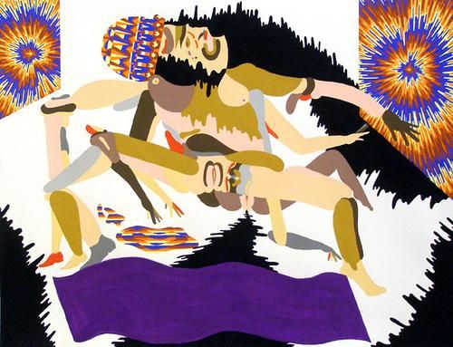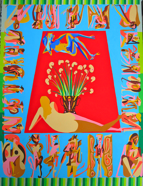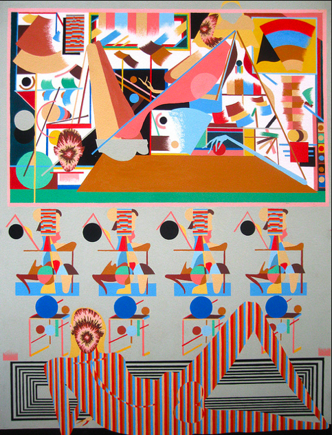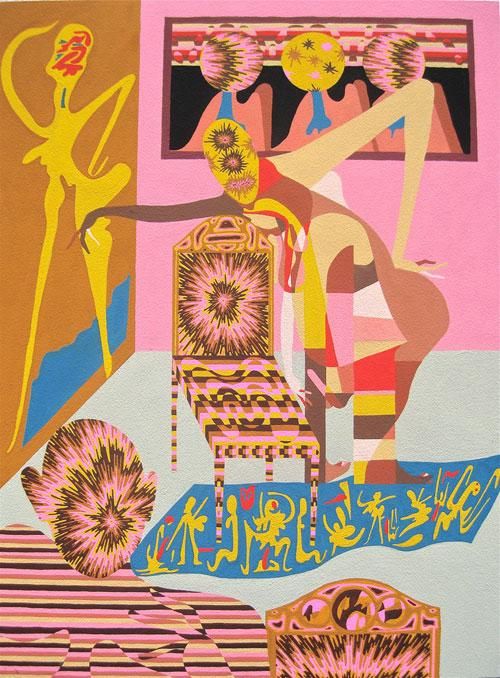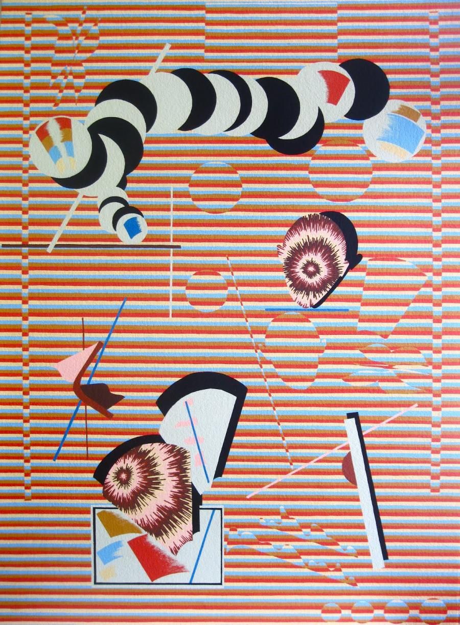 Eric Shaw is a crazy artist, that has not an academic base, that smokes inhaling from gigantic squashes, and that it is immersed in psychedelic and confusing works that seem do reference to ancient Mayan ritual. He approached to the art beginning for pure case to customize t-shirts during a concert, continued customizing the skateboard for his friends, and finally landed at the true and actual painting, of whom now does not succeed to do except for during all of the arch of his days or at least alternately to the parties at home with the co-tenants. To look at his works, contrasting feelings attack us, among which above all the anxiety, because collects a series of symbols, colors and shapes that don't stretch out to match to each other or to communicate between them, but that create chaos and disorder, a lot that they seem works in motion, based on which was done also a video in which these one come enlivened but without a precise criterion: the true essence of the art Of Eric Shaw.