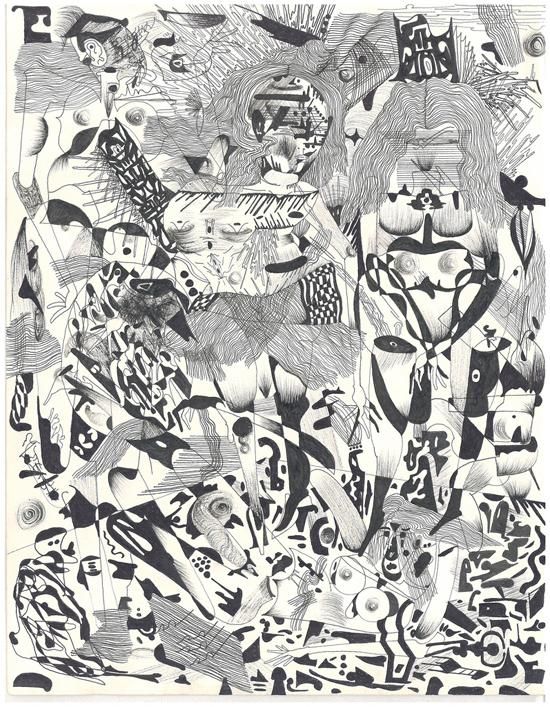 Eric Shaw è un artista assurdo, che non ha una base accademica, che fuma erba aspirando da zucchini giganti, e che si immerge in opere psichedeliche e disorientanti che sembrano fare riferimento ad antichi rituali Maya.
