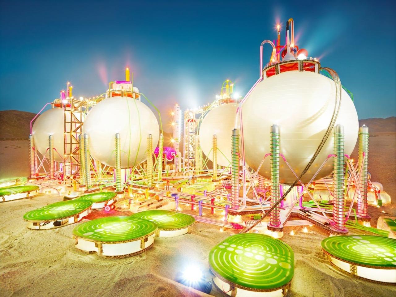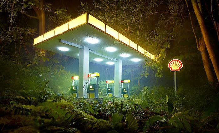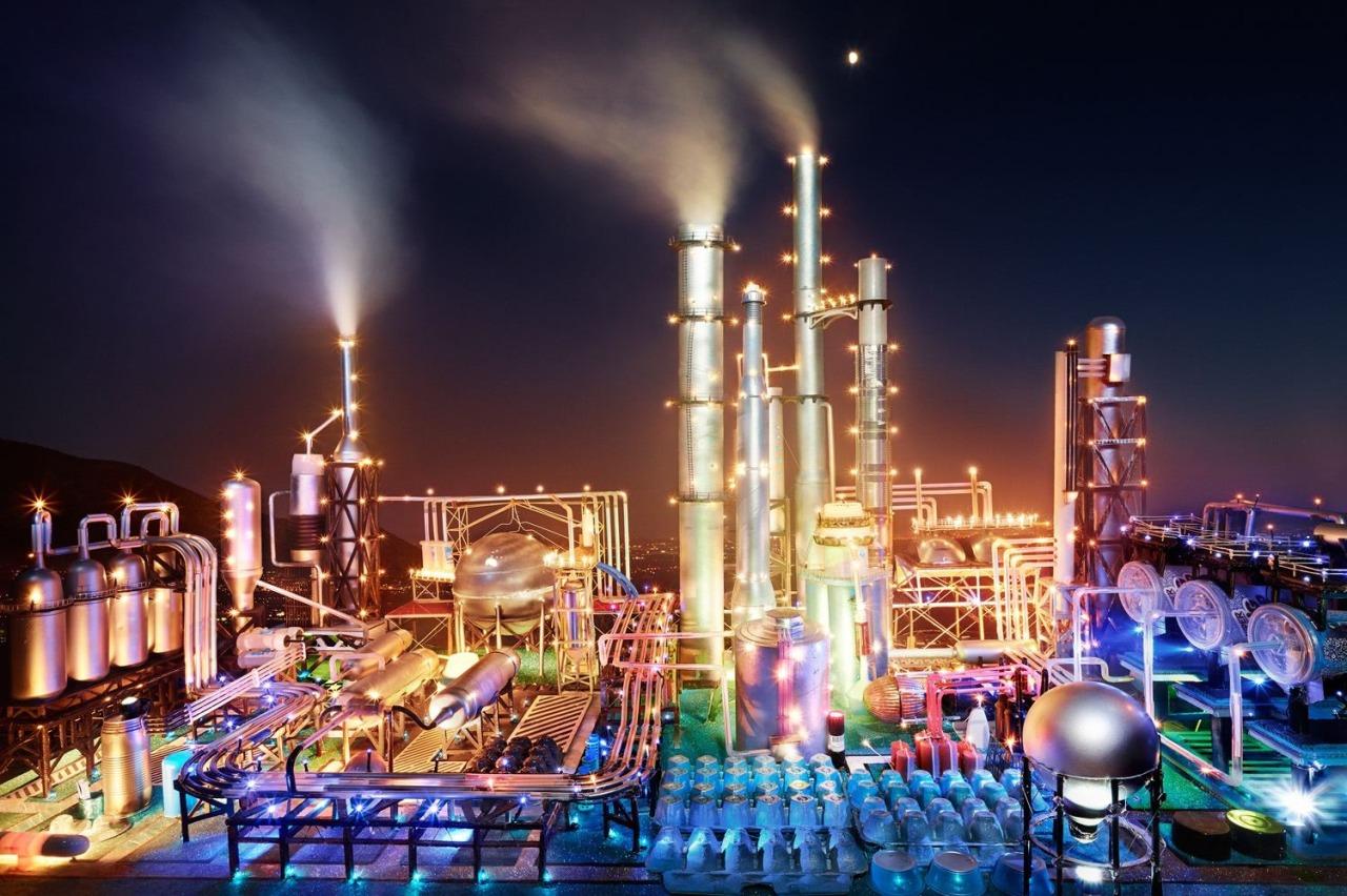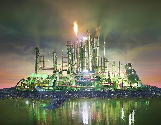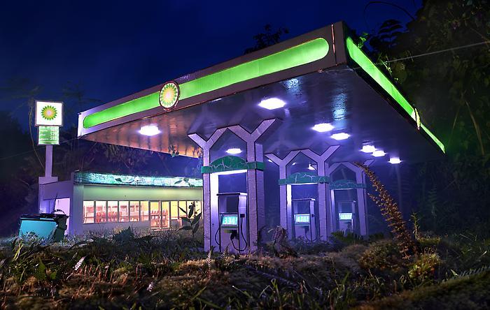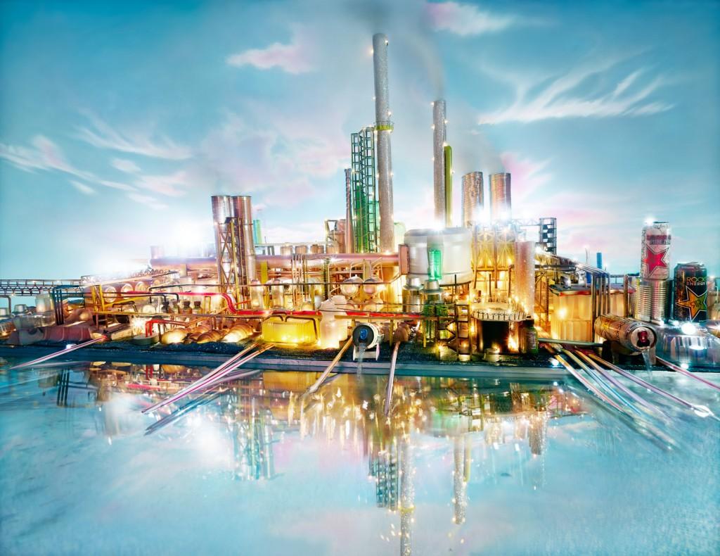 Due serie, Refineries e Gas Stations, compongono infatti la collezione e si stagliano, avatar architettonici di un pianeta dipendente dall'oro nero, annebbiando lo spettatore con il loro bagliore inquietante e con la loro estetica retro-futuristica. Si tratta di modellini in scala realizzati con materiali di riciclo e oggetti fra i più disparati (non mancano bigodini, lattine e contenitore per il the), immortalati nella foresta di Maui e sulle maestose coste californiane. Il LAND SCAPE circostante gioca però il ruolo principale: forza generativa e allo stesso tempo distruttiva, rappresenta la materia prima di cui non possiamo fare a meno ma anche la natura implacabile, in grado di divorare tutte le nostre creazioni artificiali.