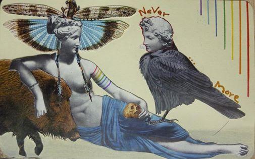 Sembra quasi che i collages siano un tipo di arte che non trova mai limiti di espressione nè di idee da combinare attraverso varie immagini: è proprio questa l'impessione che mi danno i collages di Pancho Panoptes, non sai mai cosa ti proporrà nel prossimo collage e sono sorprendenti le combinazioni ossimoriche di immagini, personaggi, oggetti, che però ricreano insieme un equilibrio inaspettato e storie assurde e inedite, sempre diverse tra loro, che non smetterei di scoprire mai.