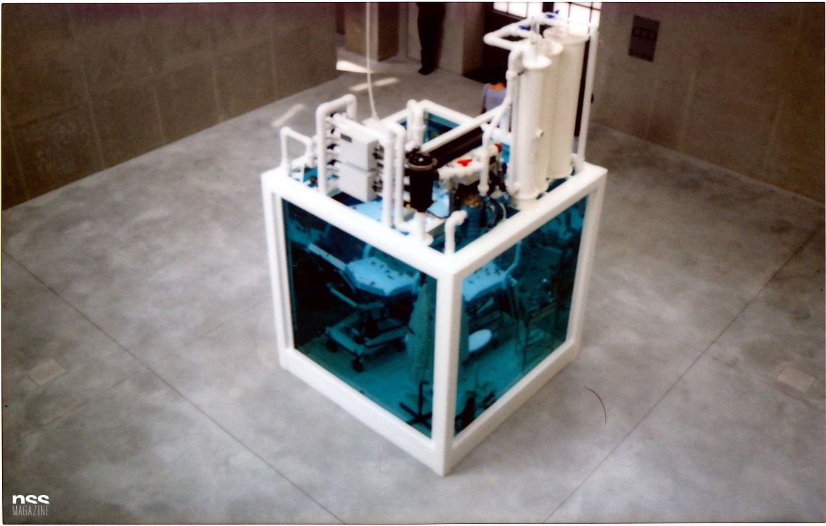 Un cubo pieno di acqua e di pesci tropicali, all'interno del quale è immersa una postazione ginecologica, con tutti gli attrezzi del mestiere. "Lost Love", l'installazione di Damien Hirst negli spazi Cisterna, è surreale, inquietante ed incredibilmente allegorica. Fa parte di Trittico, un progetto che prevede la presentazione a rotazione di tre opere della collezione Prada, accostate tra loro in un gioco di rimandi formali e affinità concettuali.