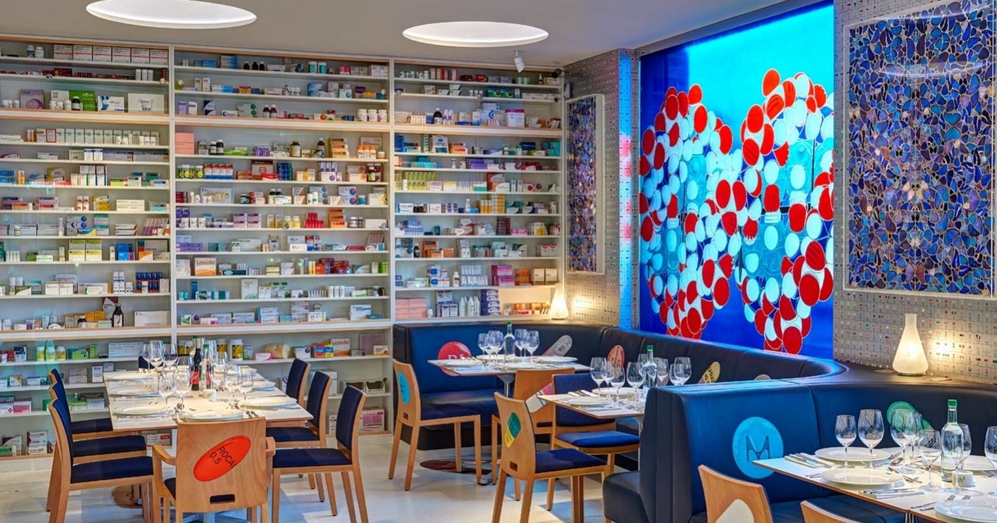 Intimamente legato non solo all'informale, ma anche all'action painting e alla pop art, Damien Hirst sta per aprire un nuovo ristorante a sua immagine e somiglianza, in collaborazione con lo chef inglese Mark Hix. Lo spazio è caratterizzato da grafiche multicolor ripetute e scritte al neon estremamente attuali e glam, il tutto inserito in una cornice di design che richiama l'assetto di un laboratorio/farmacia, tanto da aver attribuito alla stessa location il nome Pharmacy 2.
