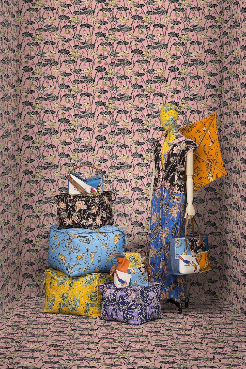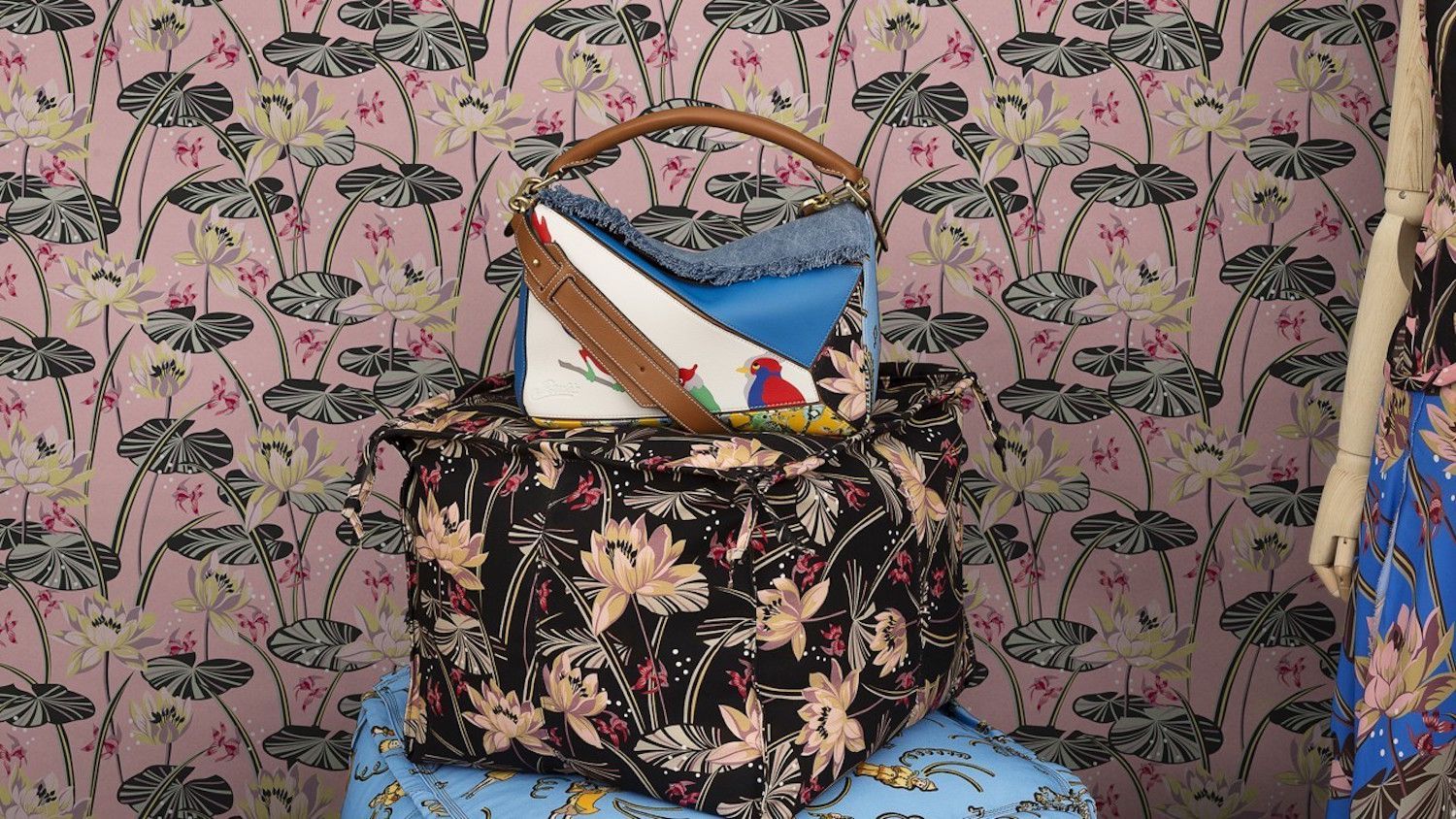 L’eleganza moderna del brand spagnolo ed il fascino bohemien di Ibiza si fondono diventando una serie di borse, accessori e capi di abbigliamento ready-to-wear, tutti decorati con stampe tropicali piene di fiori e pappagalli dai colori brillanti.