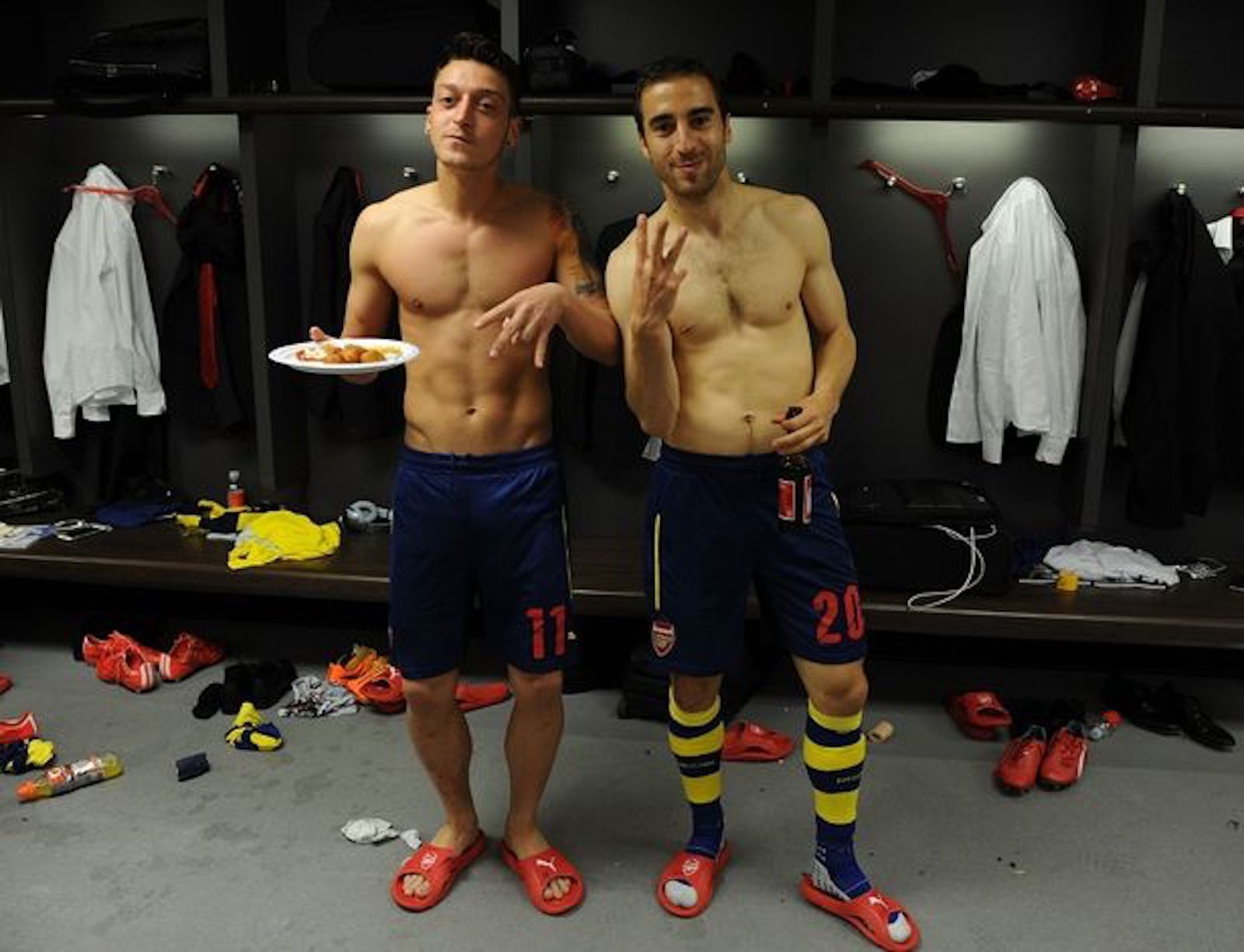 Di sicuro Mesut in spogliatoio non potrà fare come il vostro compagno di squadra scroccone che non si porta lo shampoo per fare la doccia dai pulcini, per quanto riguarda Mathieu Flamini invece... niente, Flamini non ha compagni di squadra.