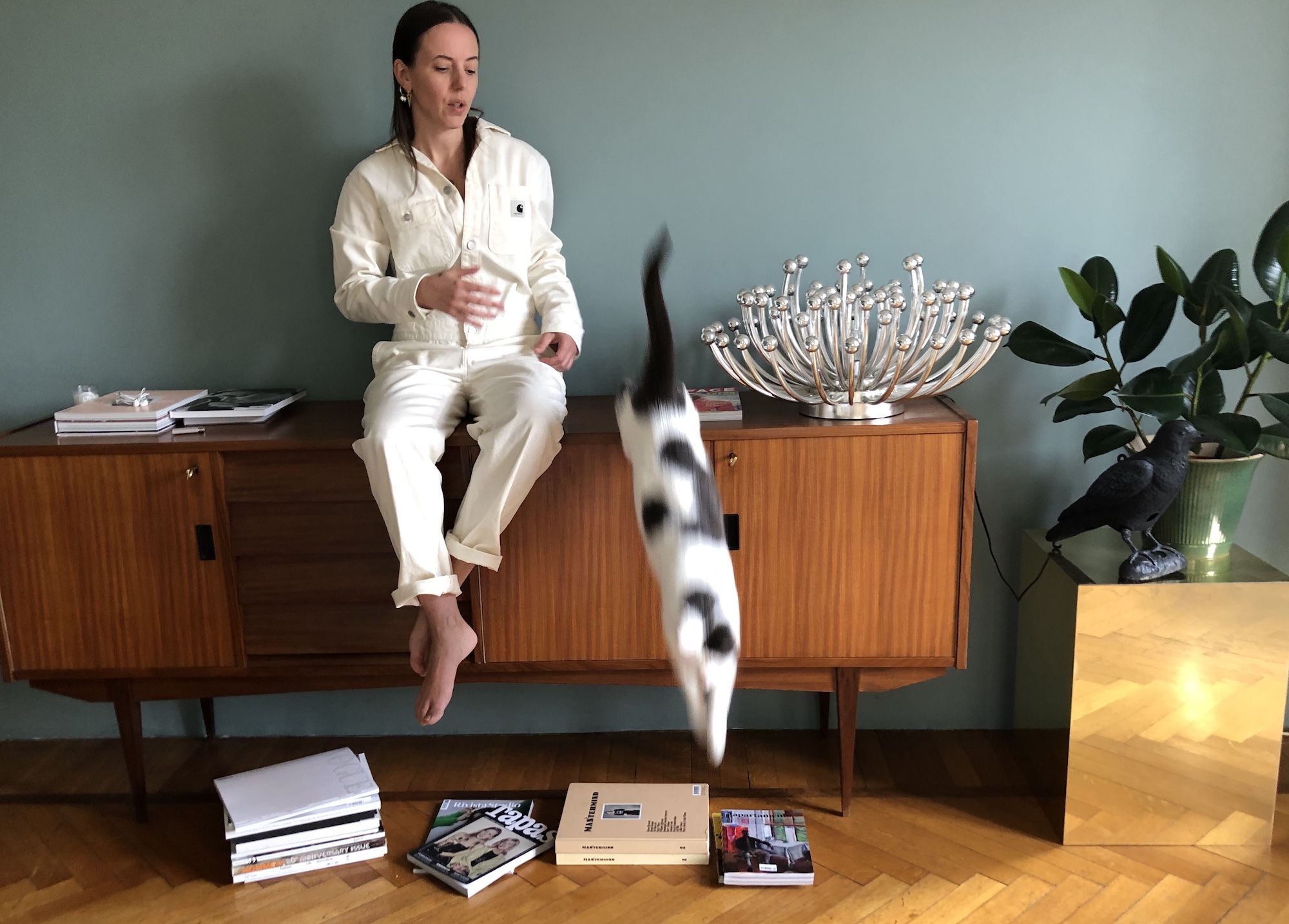 Sono a casa in isolamento con il mio compagno e i miei 2 adorati gatti, Romina (detta Mina) e Sandro (detto Sandrino). Trascorro la maggior parte del tempo dedicandomi alla ricerca di fotografi internazionali emergenti, che - purtroppo - in tempi normali non ho tempo da fare. Riguardo il mio archivio personale, i libri di fotografia, le nuove e vecchie riviste di moda indipendenti per trarre ispirazione. Ovviamente sto anche passando molto tempo su Instagram. Mi sento molto vicina alla mia comunità grazie alla mia passione per la moda. Paure? Molti. Sogni? Ripensare il nostro futuro in modo più etico!