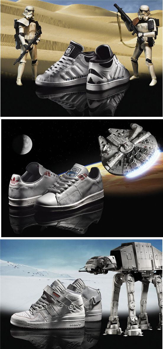 Ma non finisce qui: le scarpe diventano anche dei joystick, attraverso i quali i fan possono misurarsi direttamente con tre giochi interattivi: 1) Adidas Originals Star Wars™, 2) un’animazione ispirata al mondo dello skateboarding e 3) l’ultimo (in uscita) dedicato agli appassionati di musica (l’idea è di permettere agli utenti di improvvisarsi dj manovrando le scarpe come fossero consolle).