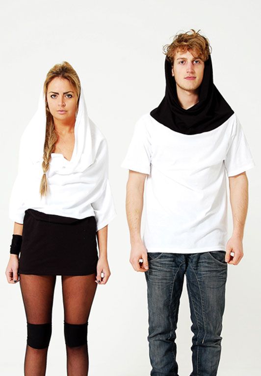 Questa l’ho trovata veramente geniale. Personalmente io non avrei mai pensato ad un modo “alternativo” di indossare una semplicissima tshirt…eppure, a quanto pare, qualcun altro l’ha fatto per me. Il brand newyorkese Take off your clothes ci propone, infatti, questa fantastica “inversion tee”, perfetta per lei e per lui. Priva di girocollo ed aperta sopra e sotto (ammesso abbia ancora senso di parlare di “sopra” e di “sotto”!) , lei la infila dalla parte bianca sul petto adagiandosela sulla nuca, e così facendo la parte nera diviene una minigonna, lui la infila proprio dalla parte nera che, invece, così funziona da cappuccio trasformando la tee in una felpa basic bicolore. Io non ho parole, quelle che avevo ve le ho scritte, ma mi rimane da dire solo una cosa: super!