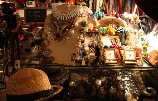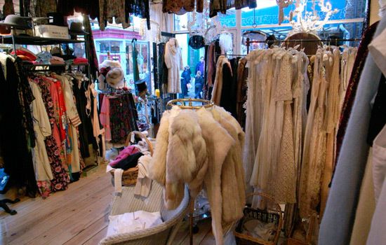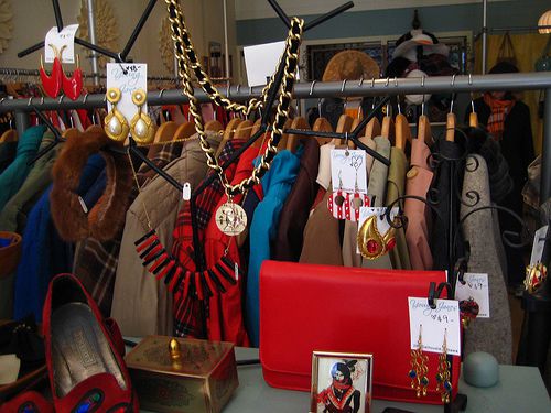 Credo che qualcosa nel suo tessuto, nella sua trama, nei suoi colori, mi facesse stare bene, ignorando il circostante, vivendo il superficiale. E quel cappello, l’avrei indossato in ogni occasione, l’avrei portato con me per sempre, solo perché mi era stato detto che ero splendida, dalla persona sbagliata al momento sbagliato e questo mi faceva sentire forte, vissuta. Guarda bene poi fra quelle collane, fra bigiotteria e gioielleria, troverai sicuramente il giusto tesoro da tenere con te. Non dimenticare mai di respirare in questi posti; lo so, l’aria non è delle migliori, tra polvere e naftalina ti sembrerà di essere immersa in un enorme baule. Anche quando sarai fuori, quella soffocante sensazione verrà via con te ed i tuoi occhi saranno pieni di colori e di forme inconsuete, ma così evocative. Stai certa, però, che la sensazione nel tornare a casa, non ti lascerà sola fra i tuoi pensieri, ma continuerà a farti venire nuove ispirazioni ed interrogativi a cui tu sarai libera di trovare una risposta o meno. Stai attenta poi a saper scegliere, saper mischiare il vecchio con il nuovo. Io ho sempre provato a farlo, ma sai, ai miei tempi, non avevamo la fortuna del ripescaggio nelle mode antiche e non avevamo nemmeno l’inventiva degli emergenti. Cerca di vivere nell’idea che quel abito porta con sé memorie di uno sconosciuto e che per quanto tu lo possa lavare, stirare, indossare, avrà sempre il fascino del mistero di chi veniva prima di te, di chi l’ha scelto prima di te e chissà perché ha deciso di disfarsene…Ottima scelta, il mio sorriso dice tutto….sono 40.00 £…buona giornata Tesoro"