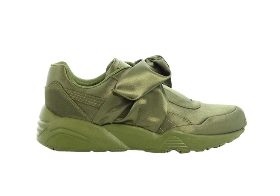 Rihanna e Puma non conoscono mezze misure quando si parla di sneakers. Queste nuove "Bow" sneakers ne sono la prova, con il loro design ed i dettagli fortemente "eye-catching". Per la tomaia di questa sneaker, che presenta una silhouette del tutto simile ad una classica R698, è stato scelto raso satin coronato da fiocco dalle proporzioni volutamente esagerate. Questa scelta la si deve probabilmente alla volontà di giocare con gli stereotipi femminili, al solo fine di rigettarli. Anche le due colorway disponibili, rosa e verde camo, sono volutamente agli antipodi. Tutti gli indizi sembrano suggerire che questa scarpa sia molto più di ciò che sembra.