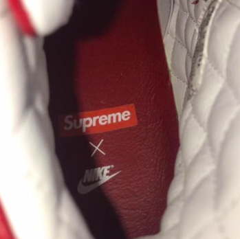 Nelle immagini emerse sull'account twitter di MRBLD la presunta nuova scarpa presenta la silhouette classica della Nike Dunk High in pelle rossa e suola bianca caratterizzata dal e tag Supreme sullo swoosh.