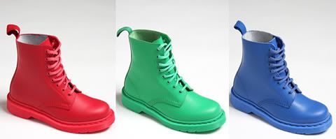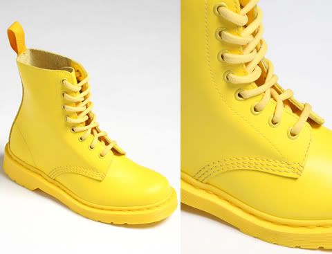 Sono poi prepotentemente entrate, in diverse wishing lists, le neo nate Darcie e Darla, che propongono una versione high heels, tutta “ortopedica”, degli indossatissimi ankle boots. Indimenticabile, la serie Primary Pascal, che vedeva l’anfibio tingersi completamente, dal pellame, alla suola, passando per i lacci e gli occhielli, in colori gessati che potrebbero conquistare l’occhio stanco di qualsiasi persona che ha puntato il dito contro il ritorno di sua altezza Martens…