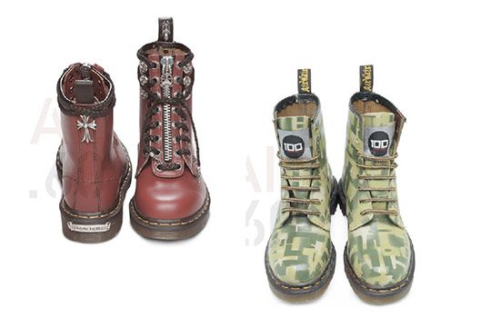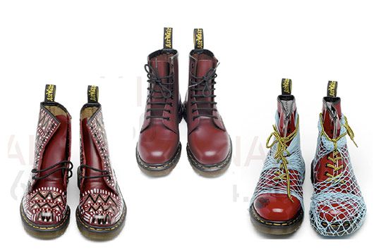 Yohji Yamamoto scelse una pattern fiorata ed una bicolore per due diversi gemellaggi. Raf Simons introdusse l’effetto specchiato e la destrutturazione, con diversi modelli che andavano a sovvertire alcuni aspetti fondamentali dell’anfibio, pieni, comunque, di fascino ed innovazione. Come non citare poi la customizzazione voluta da Vivienne Westwood, una vera e propria rete da pesca, paragonabile più ad un effetto ragnatela, che avvolge un paio di boots 1460 rosso lacca. Ultimamente, entra in casa Martens, lo streetwear, rappresentato da Stussy, che propone dei Desert Boots sorprendenti, ma dall’inconfondibile aria Docs.