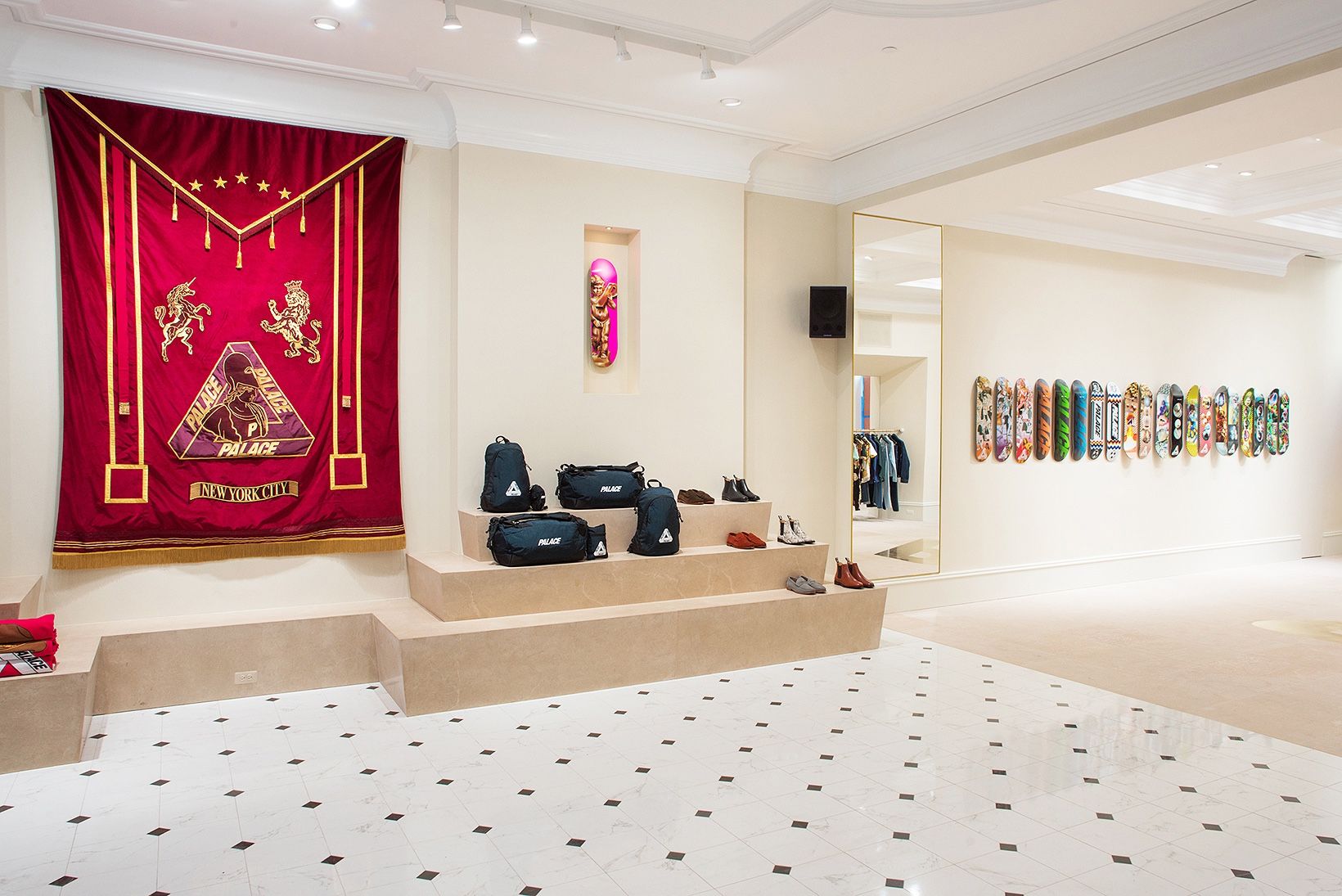 Sbirciate con noi l'interno del nuovo store newyorkese di Palace Il brand londinese sbarca oltre-oceano e per l'occasione si tinge di oro e porpora