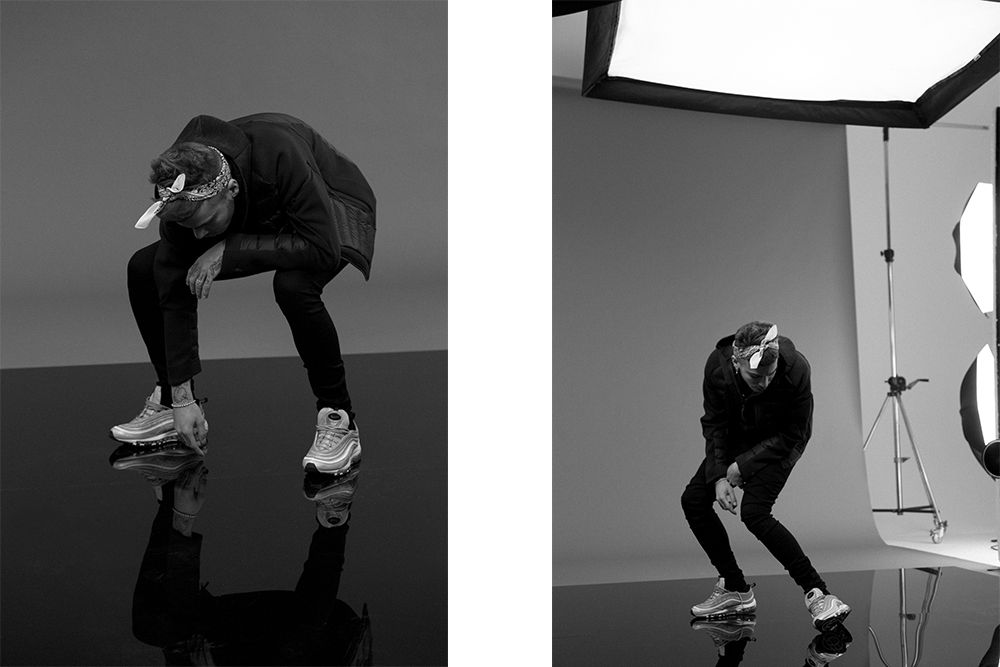 Non sorprende che Sfera Ebbasta sia stato preso sotto l'ala protettrice di Marcelo Burlon e ancor meno il fatto che Nike lo abbia scelto come volto per alcune collaborazioni, come l'evento Future Forward Milan per celebrare le Air Max 97 o il lancio delle Air VaporMax, che ha visto il rapper nei panni di un astronauta in missione nello spazio.