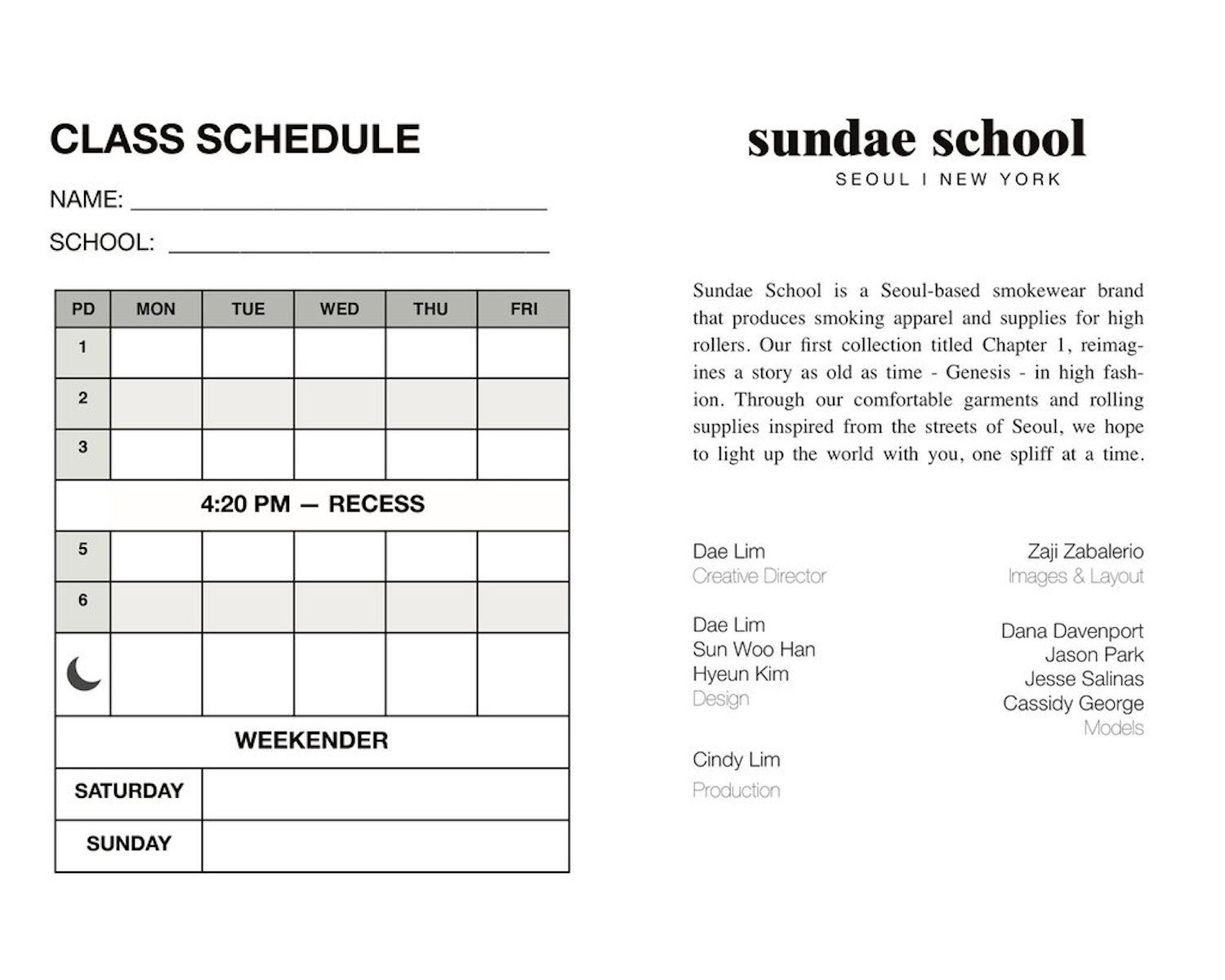 Si chiama Sundae School, un brand Seoul-based fondato dai fratelli Cindy e Dae Lim che lo scorso Aprile hanno lanciato la loro prima collezione, chiamata Chapter 1: Genesis, a New York. Si tratta di una serie di capi basic dedicati, udite udite, alla cannabis, concept interpretato attraverso un lookbook che ricrea la sacra scrittura della Genesi.