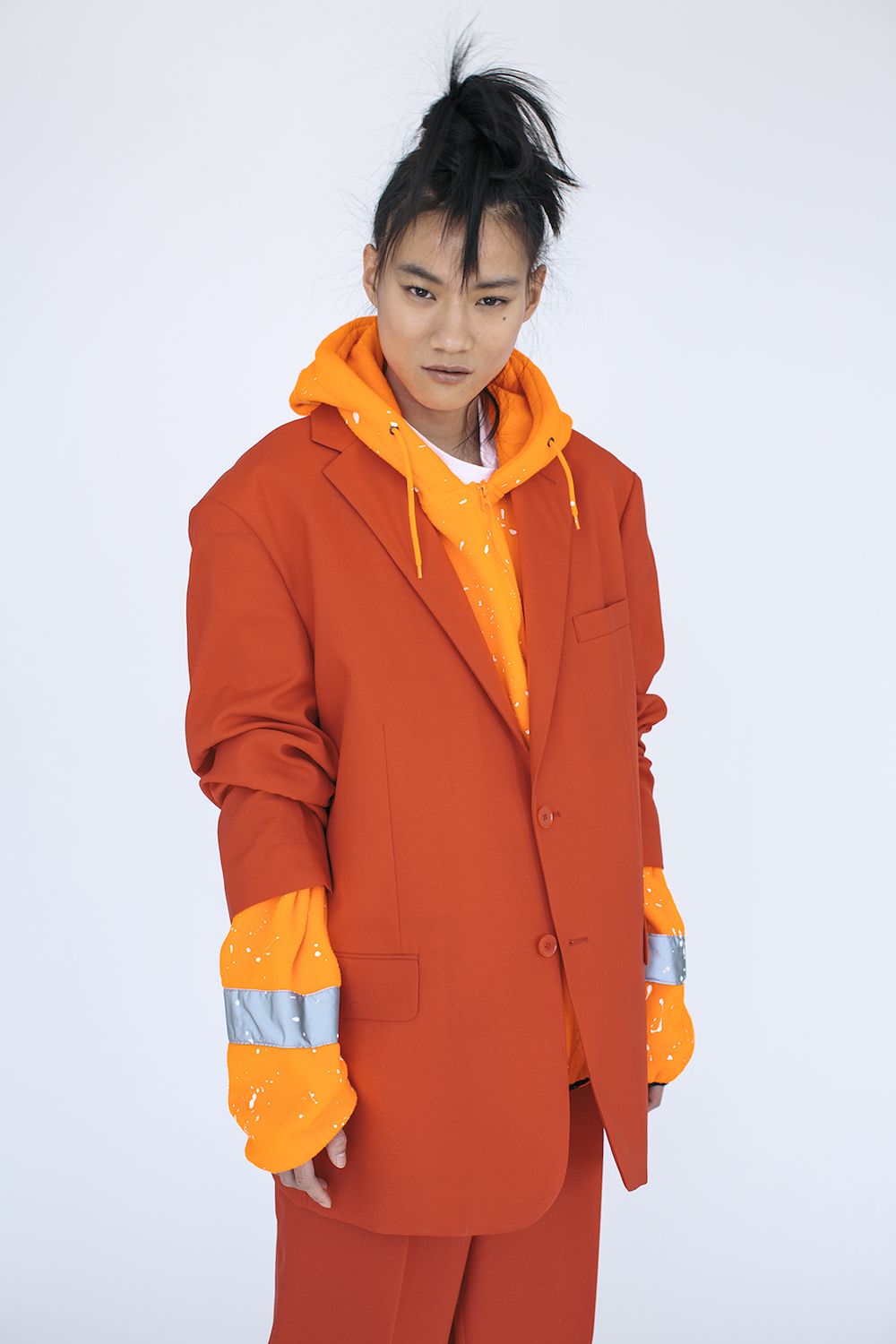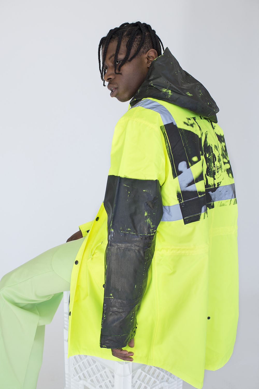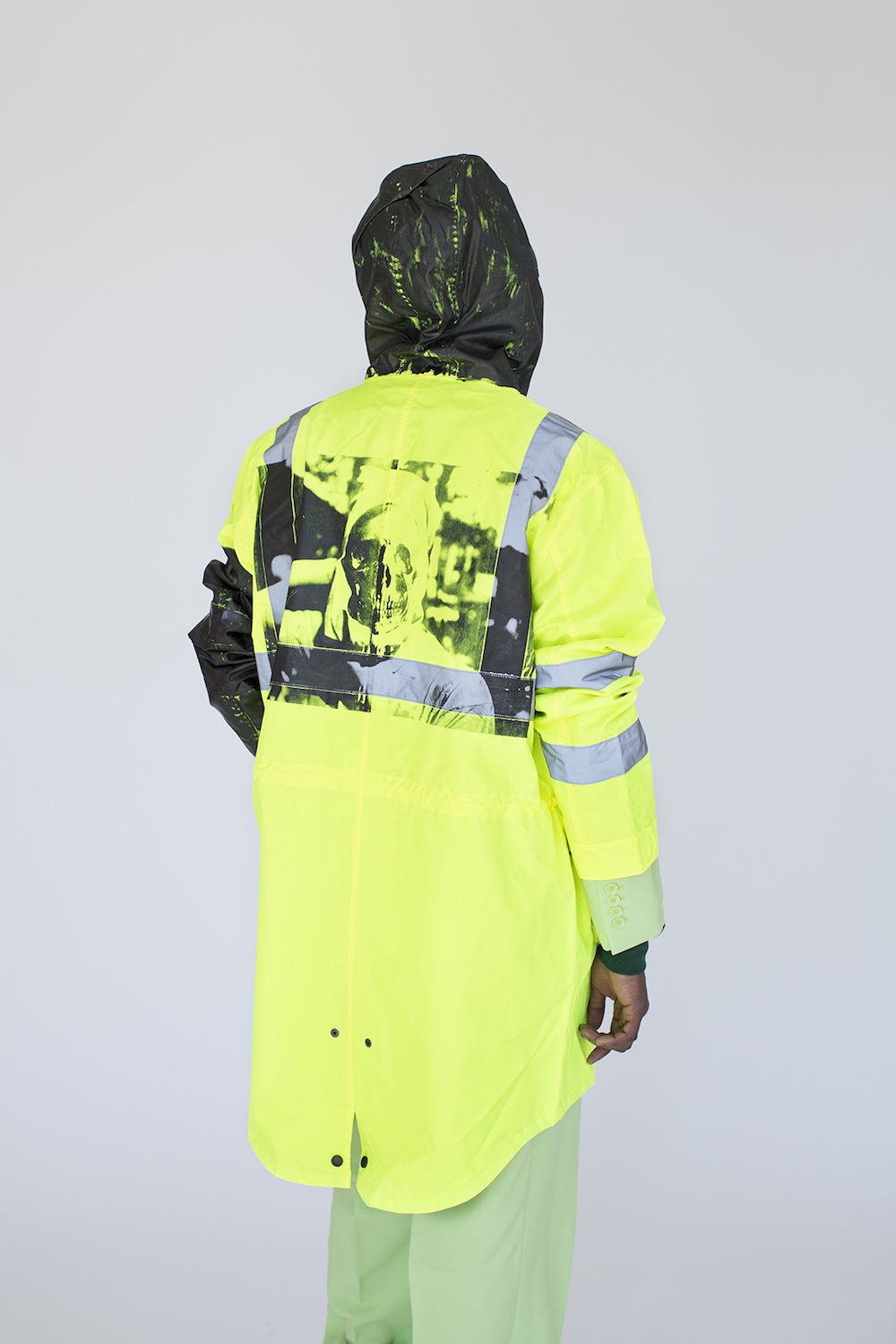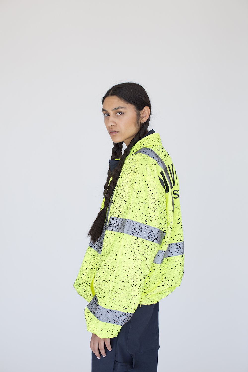 Dopo essere state abbracciate come sinonimo di ribellione - per la versatilità e accessibilità - da nicchie culturali quali gli skinhead e i punks inglesi nella metà degli anni 70’, il camouflage e l’aspetto utilitarian delle divise militari, proprio anche del workwear, è un soggetto al quale il fashion attinge da quasi cinque decadi. L’hi-vis è in un certo qual modo un camouflage contemporaneo... Penso alla sub-culture dei graffiti-writers e di come la veste arancione sia usata come espediente per essere scambiato per un lavoratore nella yard o nei tunnels e di mimetizzarsi con quelle figure che di fatto rappresentano sicurezza, ordine e controllo. L’idea quindi, di poter attingere all’aspetto estetico e utilitarian del mondo dell’ hi-vis con tutte le sue accezioni e shifts e poter costruirci attorno un ulteriore strato estetico, è la chiave di lettura di questo progetto che ho presentato a Parigi tramite Slam Jam - realtà con la quale sono sempre stato tangente e con la quale ho collaborato in svariati progetti fotografici prima di spostarmi a New York più di un decennio fa.