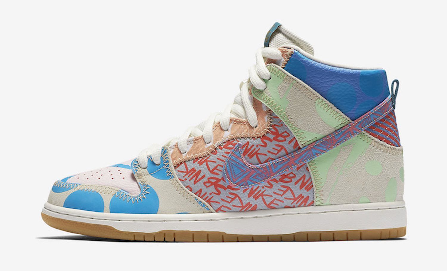 L’idea di creare un pattern con scritte e loghi in stile “sketchy” non è certo nuova, queste nuove Nike SB Zoom Dunk High infatti rendono omaggio all’originale Nike SB “What The” rilasciata nel 2007. Da quel momento in poi questo stesso concept è stato più volte reiterato su differenti silhouette. Tuttavia questa volta Nike può contare sull’apporto artistico di Thomas Campbell che ha disegnato un esclusivo pattern che mescola differenti colori, texture e loghi. Queste sneakers saranno disponibili in selezionati retailer Nike.