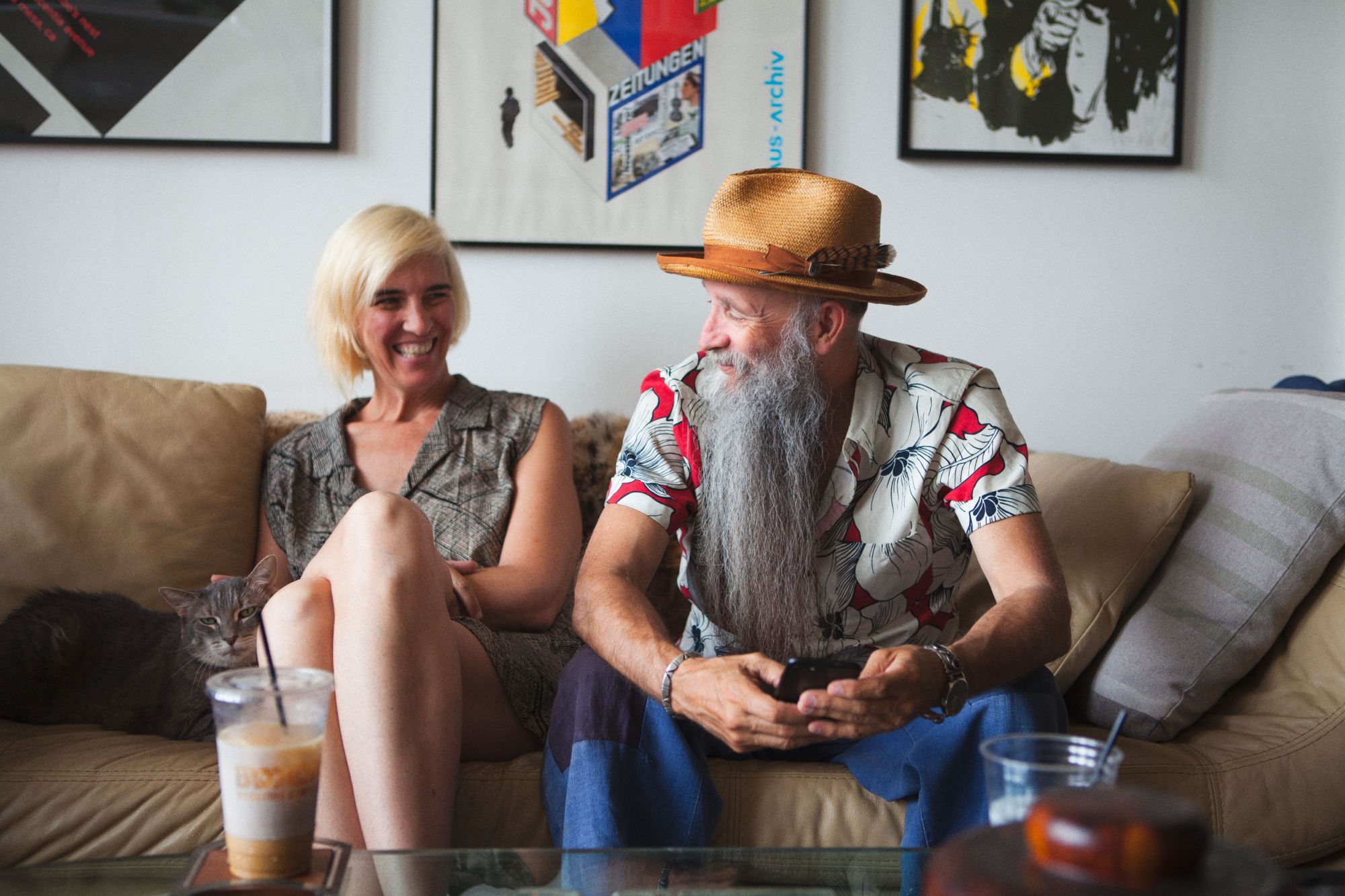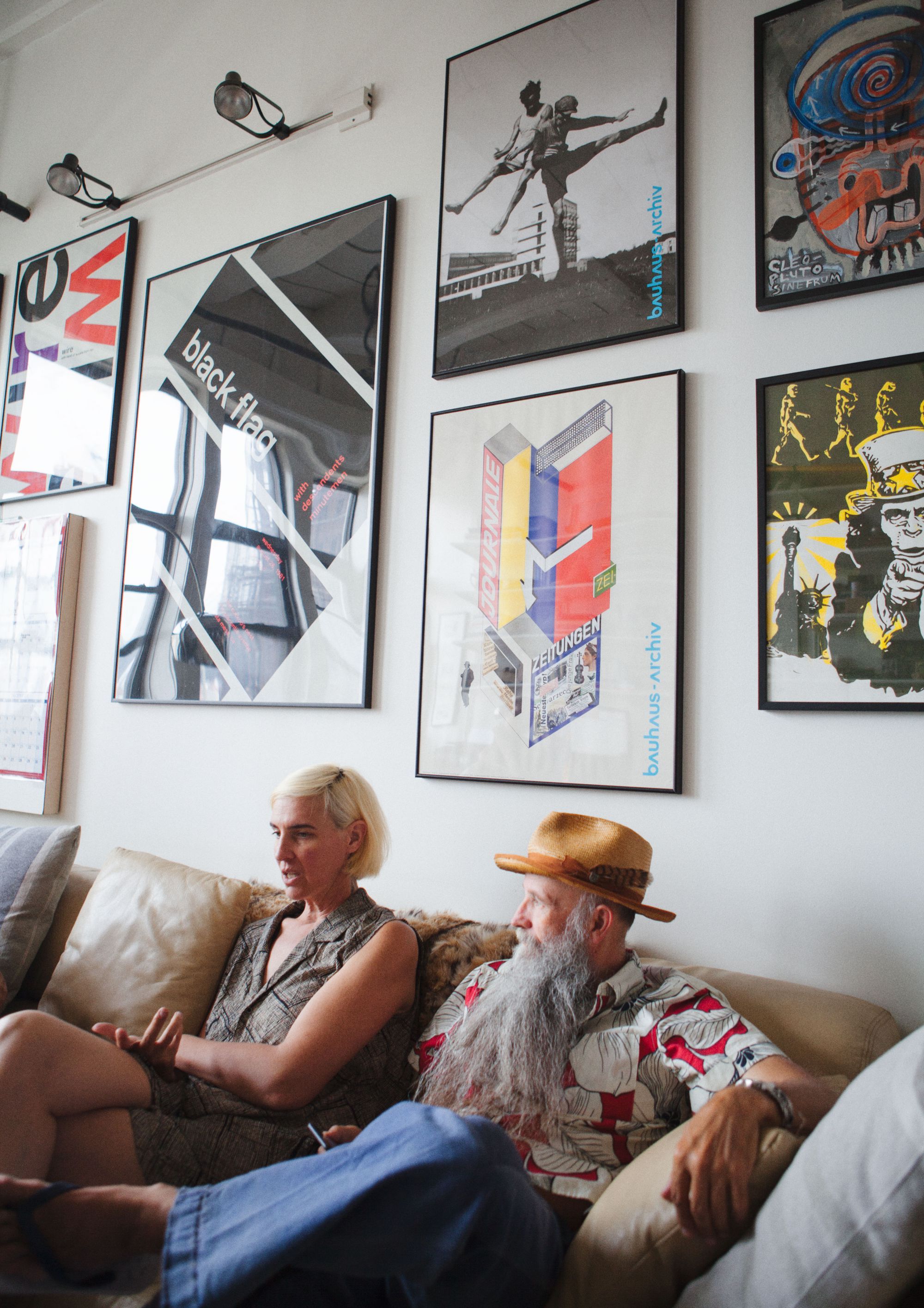 Il giorno di questa intervista, Courtney Nearburg, una metà di Krammer & Stoudt, fuma una sigaretta in un angolo non lontano dal suo tavolo, mentre Mike Rubin, la forza sartoriale del brand, mi aspetta nel salone con indosso una camicia hawaiana rosso sangue e il suo distintivo cappello di paglia. Una delle caratteristiche principali della coppia è che ciò che indossano lo rivedi nelle loro creazioni, il loro gusto estetico e la loro spinta creativa sono la linfa vitale e DNA di Krammer & Stoudt.
