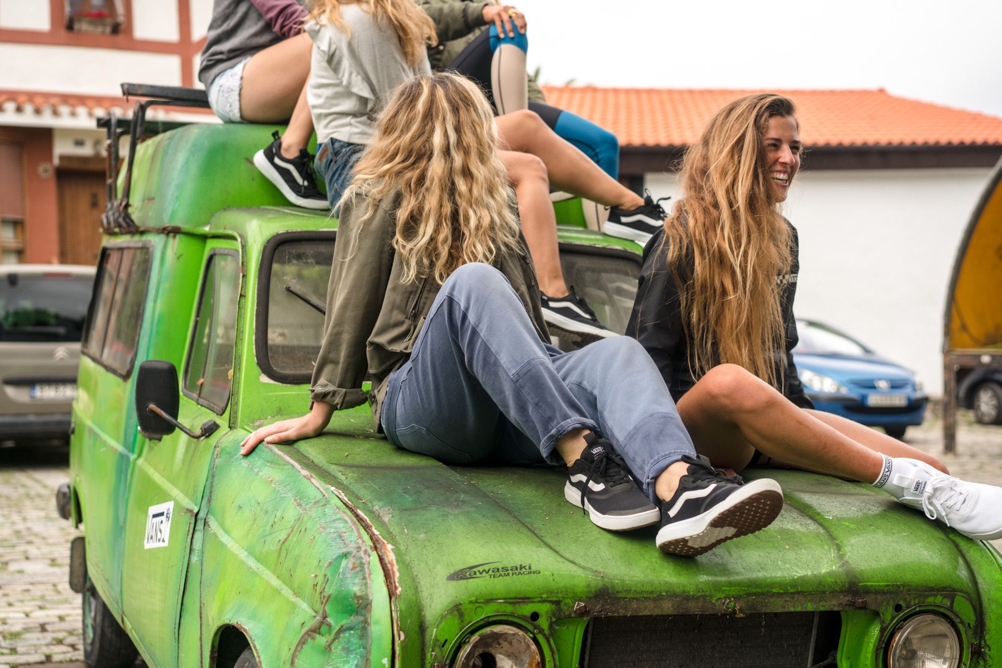 “Passiamo molto tempo in viaggio, viaggiamo circa dieci mesi l’anno per lavoro (i miei fratelli sono pro surfers) e sentivamo il bisogno di una scarpa che fosse comoda e pratica e funzionale e Vans! (ride)