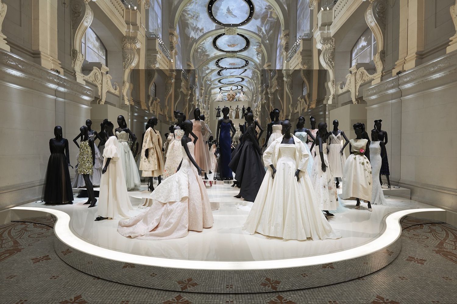 I saloni del Musée Les Arts Décoratifs tracciano il percorso della storia di Dior da Monsieur Christian a un giovane ed introverso stagiaire chiamato Yves Saint Laurent, dal ventennio sotto il regno di Marc Bohan alla moda barocca di Ferrè, dall’attitudine punk di John Galliano al minimalismo estremo di Raf Simons, fino a Maria Grazia Chiuri, prima direttore creativo donna della Maison.