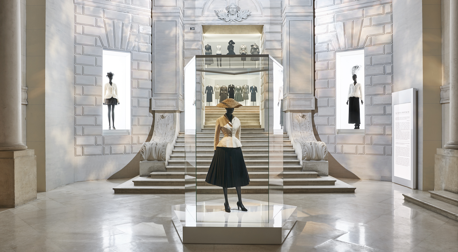 Curata da Nathalie Crinière, Florence Müller e Olivier Gabet, la mostra mette insieme una selezione di centinaia di look disegnati dal 1947 ad oggi, cappelli, gioielli, borse, scarpe, bozzetti, tessuti, profumi, fotografie, lettere, pubblicità, illustrazioni e oggetti d’arte appartenuti a Dior che ne hanno influenzato il lavoro come opere di Claude Monet e Man Ray.
