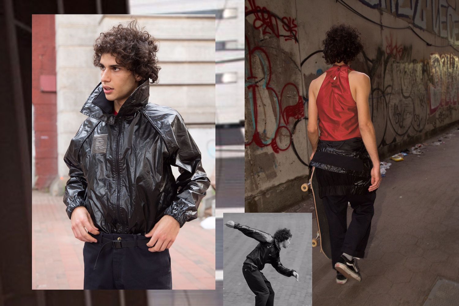 Principalmente riguarda le silhouette, le forme… il mantenere le cose pratiche. Non è questione di moda o di sembrare cool, è l’essenza basica dei completi, bombers, hoodies etc. Per esempio, durante gli scatti, Jereme (ndr. uno degli skater) ha scelto gli indumenti con i quali si sentiva più a suo agio e noi lo abbiamo scattato in azione.