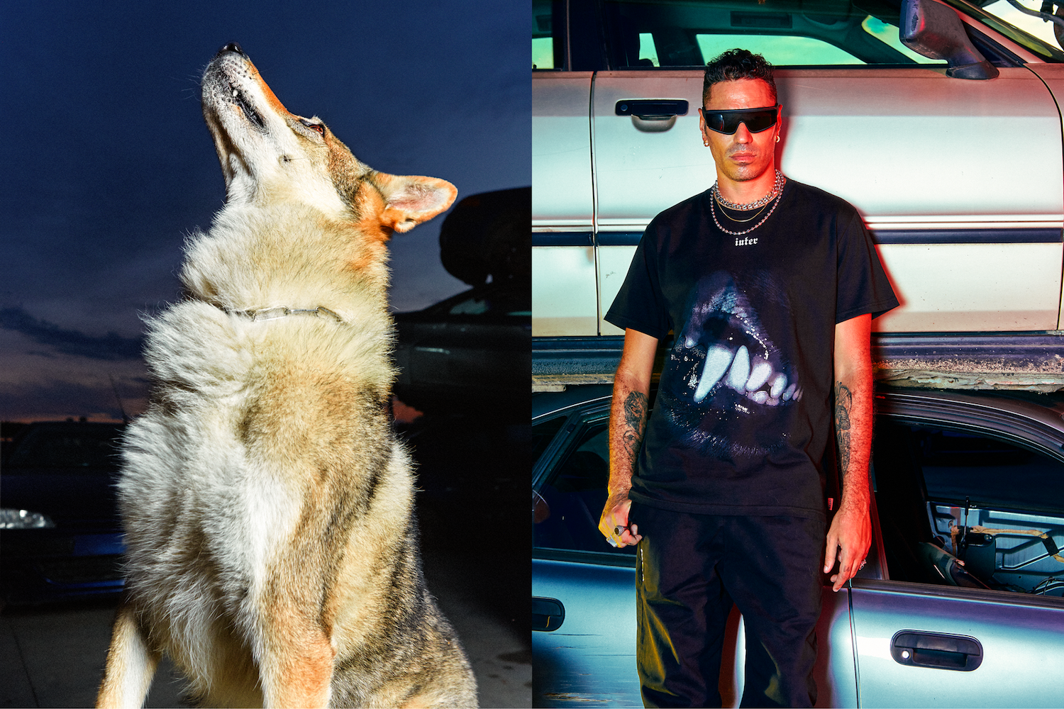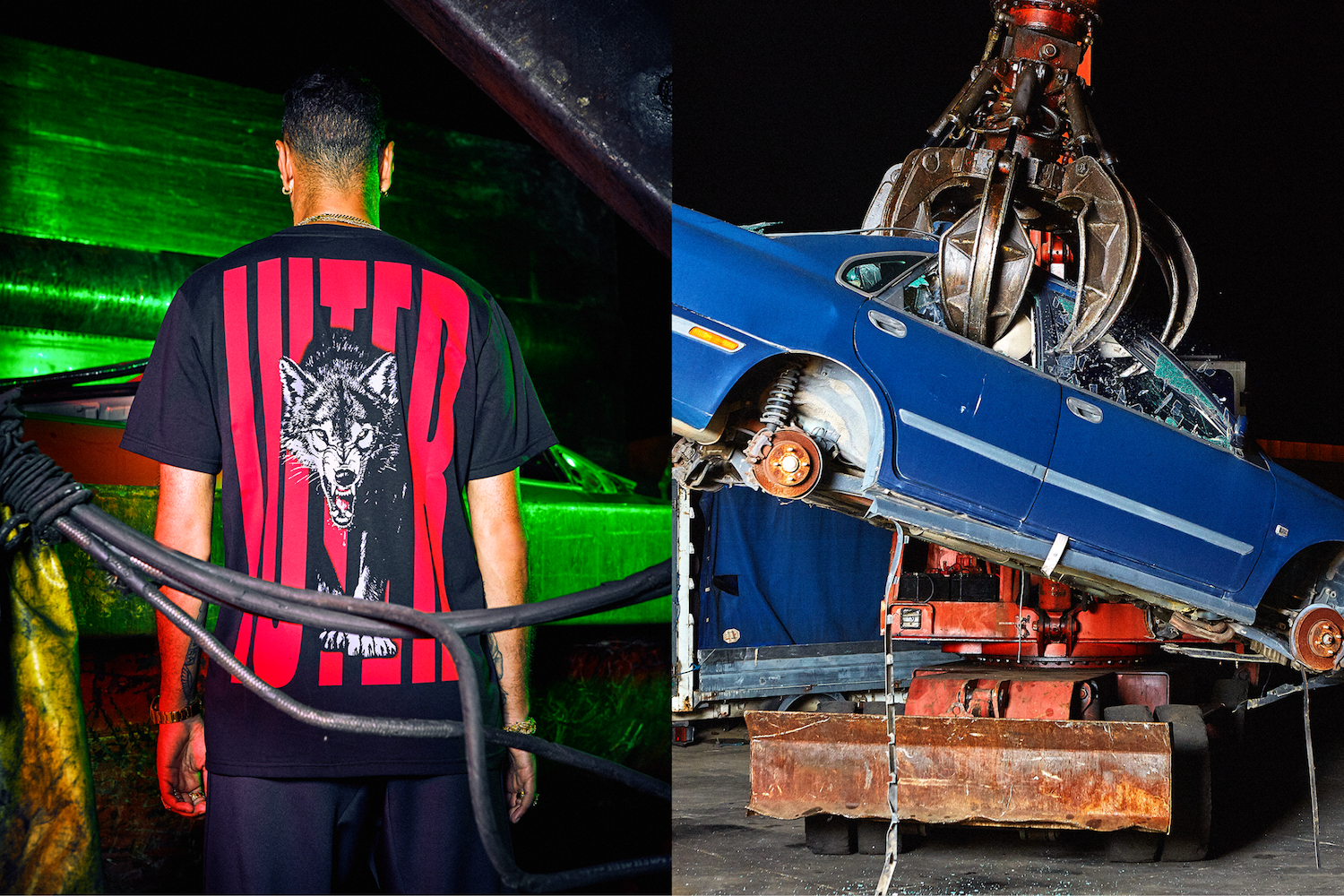 IUTER prende questo spirito animale, questo forte riferimento al concetto di branco - perfettamente espresso nei capi della sua collezione autunnale - e lo trasporta in un feroce editoriale scattato da Leonardo Scotti che vede come protagonista una delle voci più oneste e determinate della scena rap italiana, il rapper milanese Marracash; simbolo di rivalsa e successo.